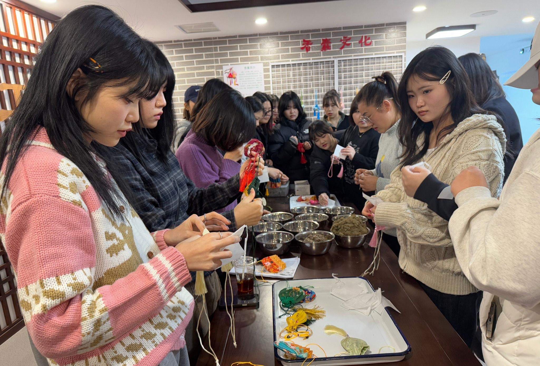 2025年1月6日,来自韩国顺天乡大学的学生们在食品与生物工程学院开展了一场别开生面的文化体验活动。学生们在药品教研室曹明珠老师的带领下,深入了解并亲手制作了具有传统意义的香囊。本次活动由校国际教育管理学院与食品与生物工程学院举办。