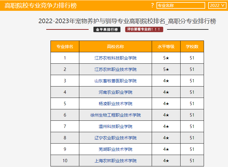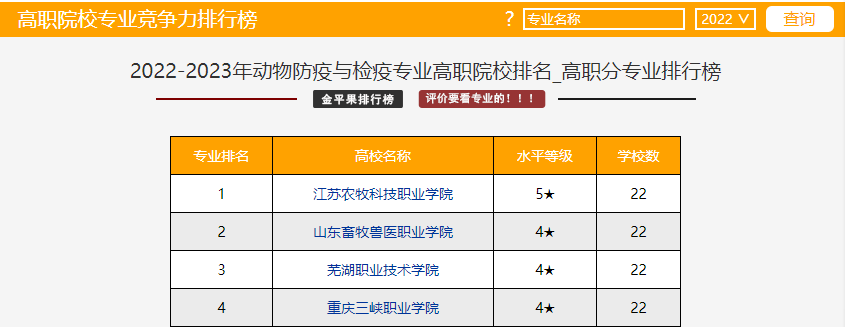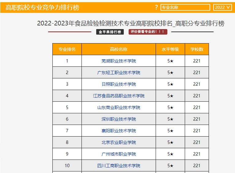 近日,2022-2023年“金平果”中国高职院校竞争力排行榜公布,我校食品与生物工程学院食品检验检测技术专业(原食品营养与检测专业)在全国高职院校专业竞争力排行榜中连续三年位列榜首!此外,我校食品与生物工程学院动物防疫与检疫专业连续两年排名全国第三,宠物养护与驯导专业排名全国前十!进一步彰显了我院双高专业群建设成效,为职教本科创建奠定了坚实基础!