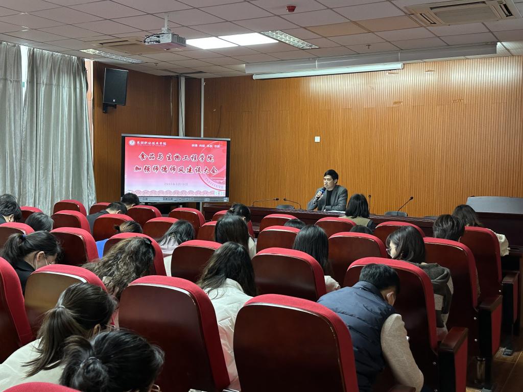 为进一步统一思想、振奋精神、凝聚共识,全面贯彻落实党的二十大精神,3月15日,食品与生物工程学院在院报告厅召开全体教职工大会暨师德师风专题会议,学院全体教职工参加。