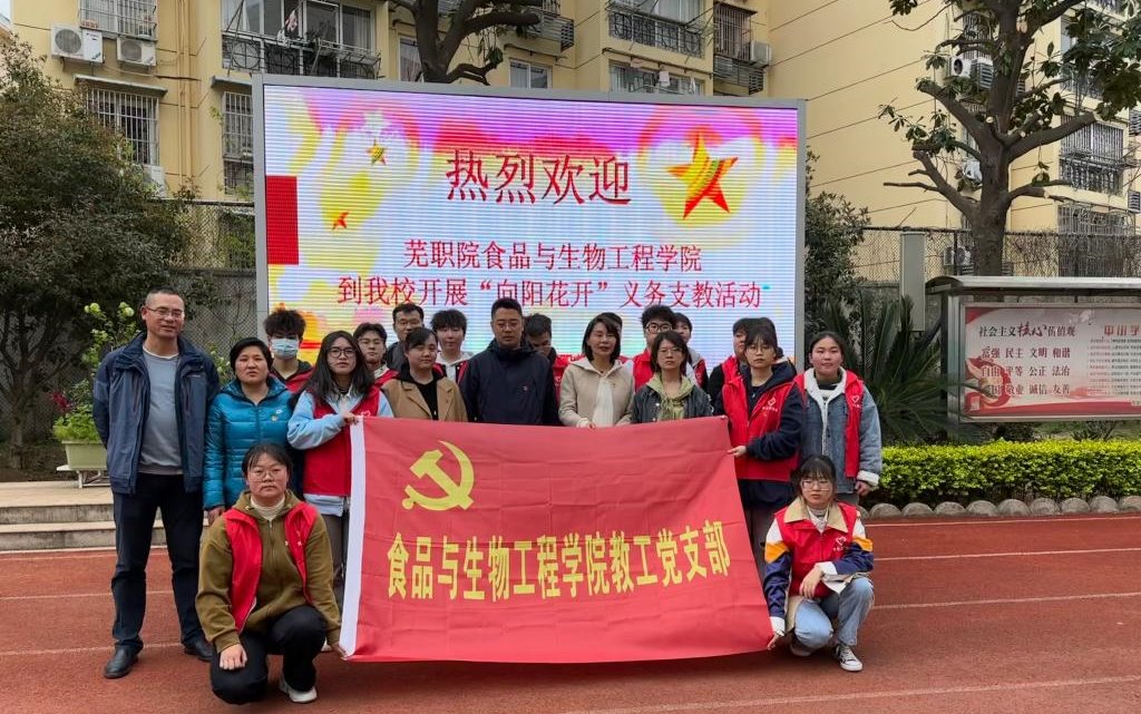 为进一步学习宣传贯彻党的二十大精神,深入推进“双联双应”,深化我院与市残联党建共建合作。3月29日,食品与生物工程学院教工党支部组织师生志愿者赴芜湖市聋哑职业学校开展“向阳花开”爱心支教活动,学院党总支副书记陶玲凤,教工党支部教师和明“宠”社青年志愿者参加。
