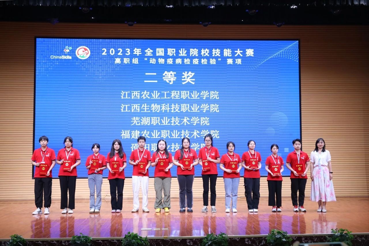 7月12日至14日,2023年全国职业院校技能大赛(高职组)“动物疫病检疫检验”项目在山东畜牧兽医职业技术学院举行,我校食品与生物工程学院牧医教研室王本忠、王巨龙两位老师共同指导的21级动检班刘家旋、21级宠护班陈贝贝在比赛中荣获团体二等奖,为安徽省代表队唯一获奖团队。