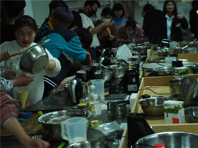 活动现场,同学们积极踊跃,思维创新,都各具想法,拼盘造型创意百出。同学们将原本没有任何装饰的蛋糕胚和面团,变成了一个个精美的作品,不仅美观更富有蕴意。虽是日常的面粉、鸡蛋、白砂糖,却组合出奇妙的温馨感受,由自己亲手制作的新鲜出炉的面点,尝起来格外香甜,现场沉浸在一片欢声笑语中。