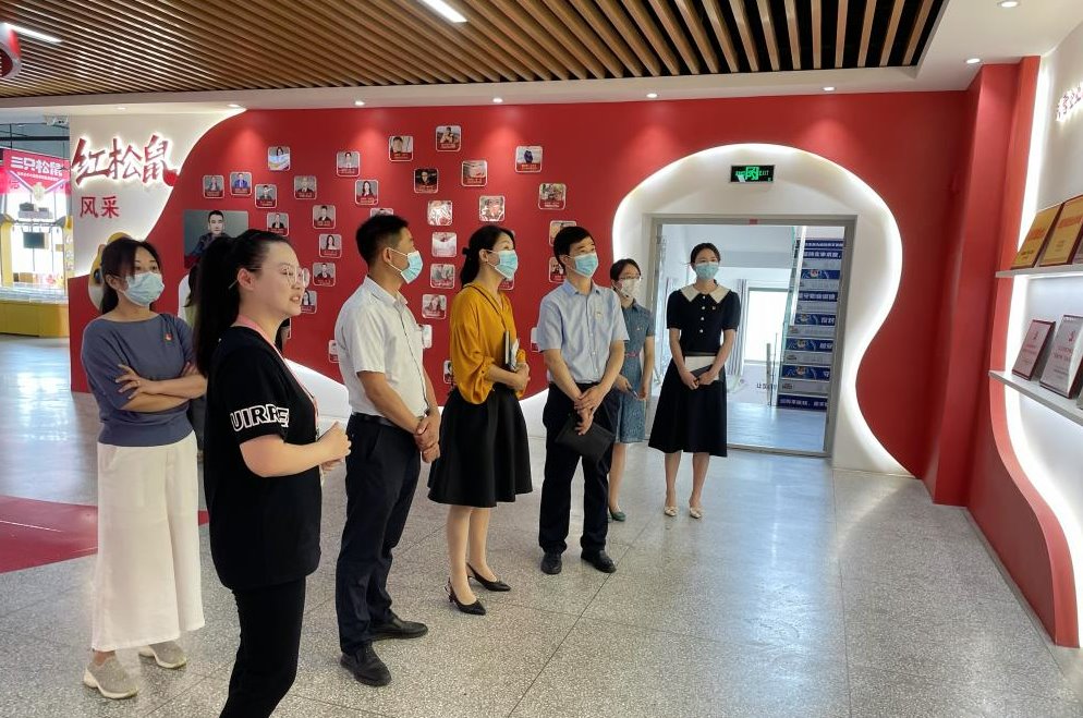 在企业相关负责人的带领下,我校一行参观了三只松鼠创意红色文化展厅,近距离了解了其党组织架构、党建发展理念以及乡村振兴扶贫系列措施。三只松鼠作为全国先进基层党组织,秉承着“把党员培养成骨干、把骨干发展成党员”的理念,不断壮大党员队伍,让党员团队作为一面旗帜引领企业前进,将先锋模范作用转化为发展动力。