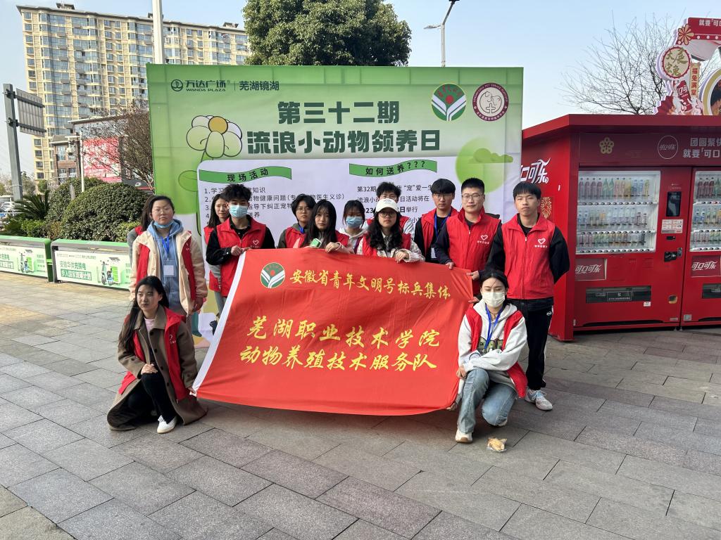 为弘扬青年志愿服务精神,发挥省级青年文明号标兵团队示范引领作用,3月12日,由芜湖职业技术学院动物养殖技术服务队师生志愿团队举办的第三十二届“文明你我,‘宠’爱一生”大型公益实践活动,在芜湖市镜湖区万达广场成功举办。