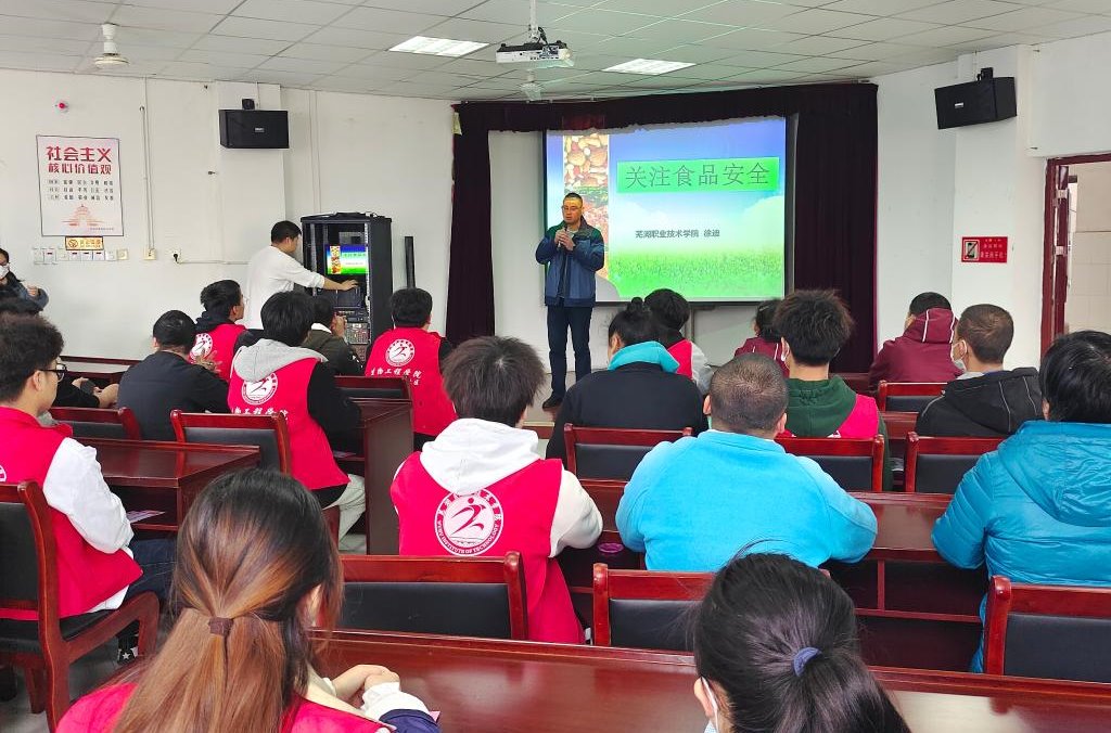 活动现场,我院徐迪副教授围绕食品安全开展专题科普讲座,他用通俗易懂的语言和生动形象的图文,向同学们传递了“民以食为天,食以安为先”的理念,从食品安全概念、常见食品安全问题、健康饮食知识等方面展开,帮助特殊学生群体进一步提高自我保护能力,增强食品安全意识。