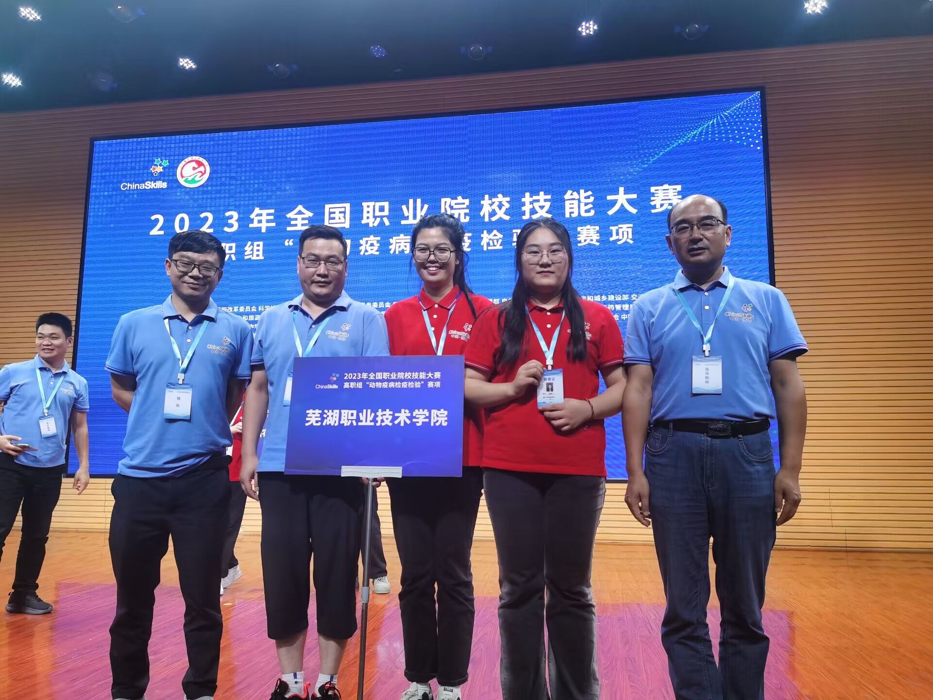 7月12日至14日,2023年全国职业院校技能大赛(高职组)“动物疫病检疫检验”项目在山东畜牧兽医职业技术学院举行,我校食品与生物工程学院牧医教研室王本忠、王巨龙两位老师共同指导的21级动检班刘家旋、21级宠护班陈贝贝在比赛中荣获团体二等奖,为安徽省代表队唯一获奖团队。