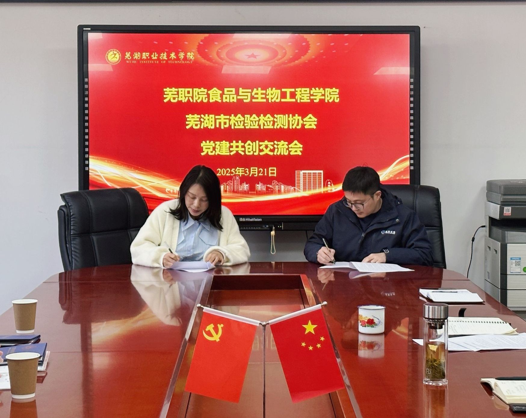 3月20日,我校食品与生物工程学院与芜湖市检验检测协会联合开展的党建共创交流会在学院会议室成功举办。芜湖市检验检测协会会长刘先华、协会企业党员代表及学院班子成员等齐聚一堂,共谋党建与业务合作发展新路径。