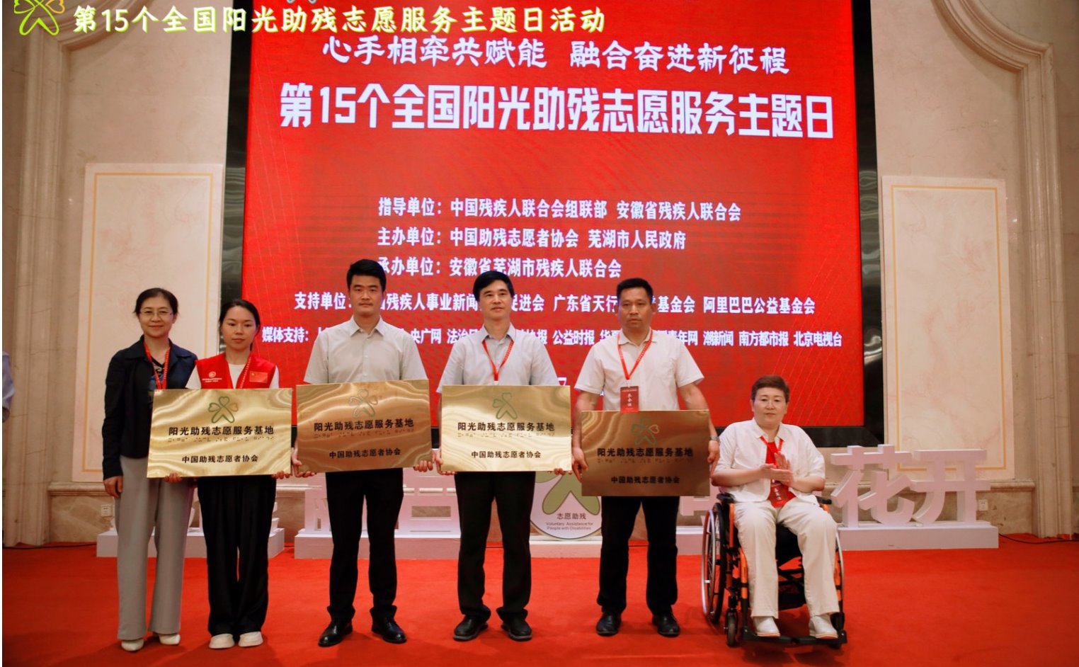 7月6日,中国助残志愿者协会10周年发展历程系列活动暨“心手相牵共赋能 融合奋进新征程”第十五个全国阳光助残志愿服务主题日活动在芜湖市举行,活动由中国助残志愿者协会、芜湖市人民政府主办。活动现场,芜湖职业技术大学食品与生物工程学院被正式授予全国“阳光助残志愿服务基地”称号。食品与生物工程学院党总支书记彭常安、全国青年文明号号长刘宽辉受邀参加活动。