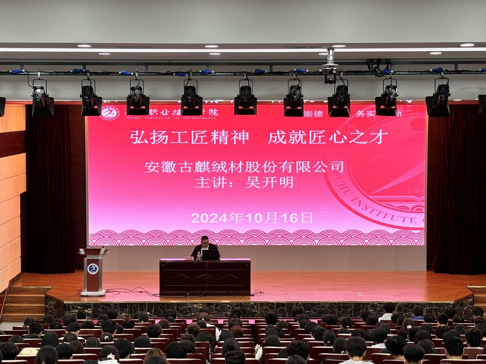 10月16日,食品与生物工程学院在校图书馆报告厅举办了题为“弘扬工匠精神,成就匠心之才”的匠心讲坛。活动邀请到安徽古麒绒材股份有限公司吴开明主任作为主讲嘉宾,为学院师生带来了一场深刻而生动的讲座。