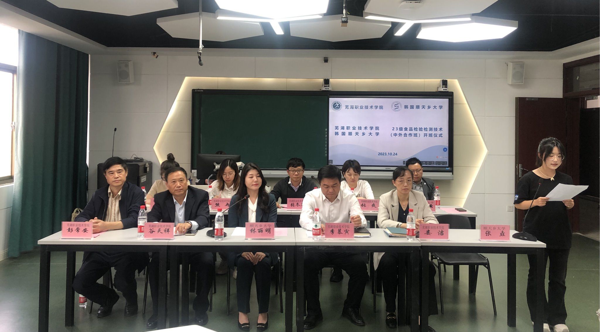 10月24日,我校与韩国顺天乡大学中外合作办学项目——食品检验检测技术专业开班仪式在食品与生物工程学院智慧教室成功举办。党委委员、副院长季慕寅,党委委员、教务处处长娄洁,国际教育管理学院院长谷天祥,顺天乡大学国际教育交流处副主任林丽明,韩国顺天乡大学华东区域负责人张垚、食品与生物工程学院负责人等以及2023级食品检验检测技术中韩合作班全体同学参加开班仪式。