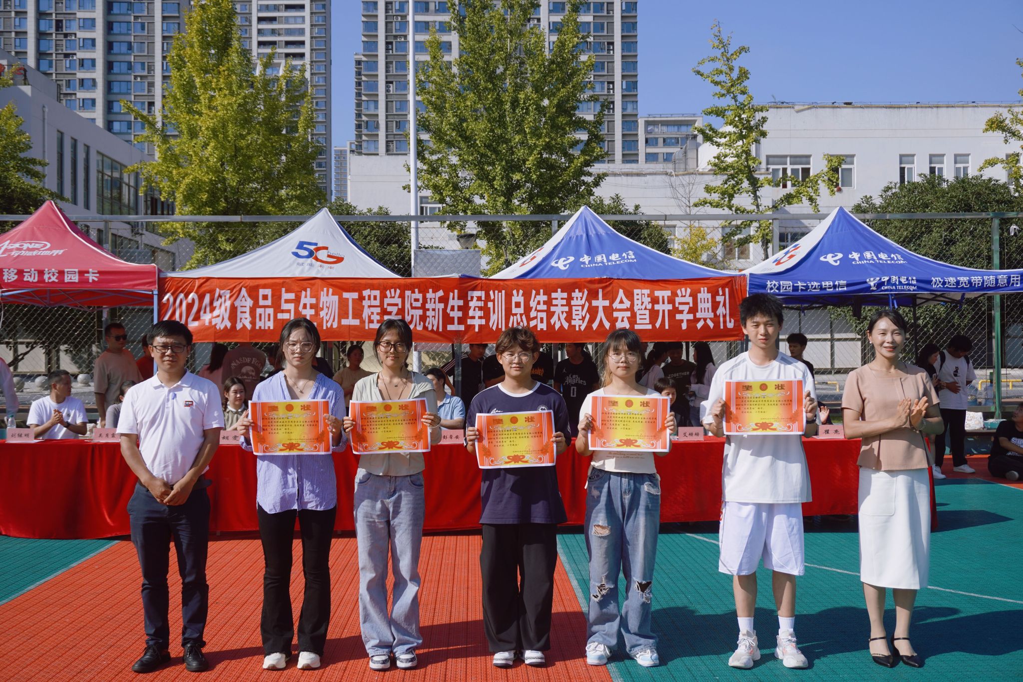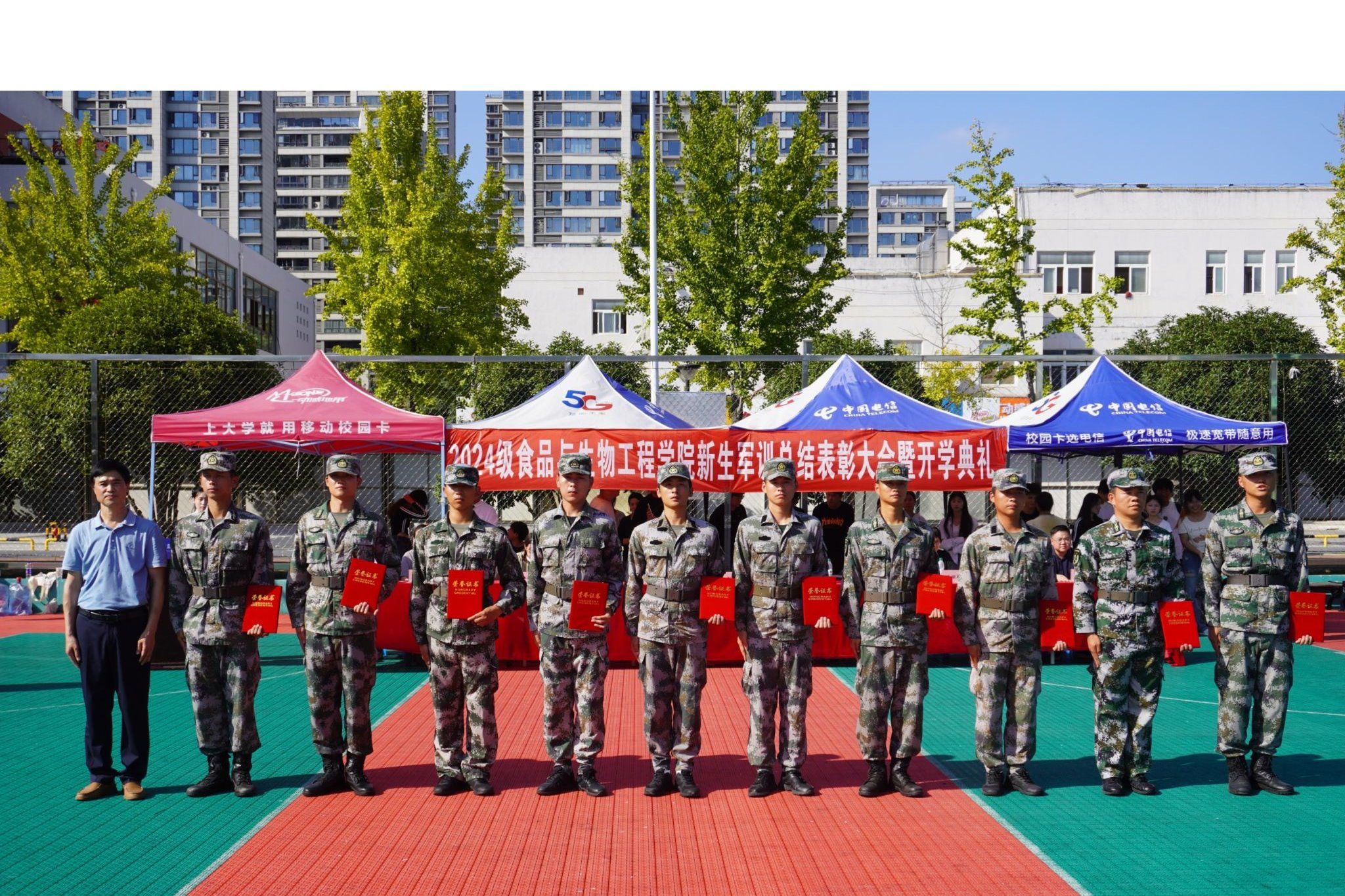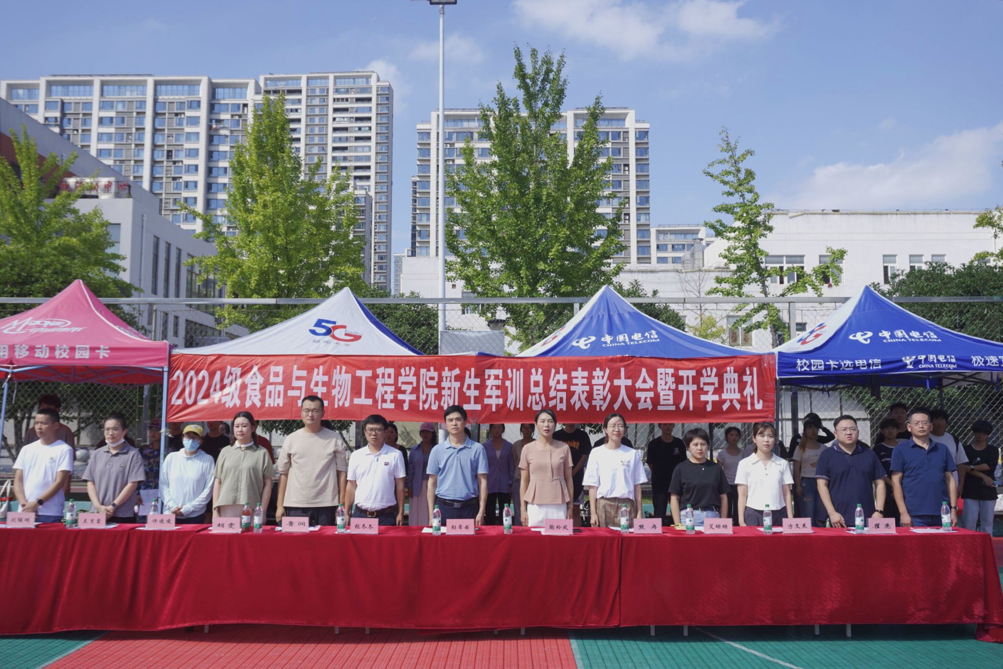 9月29日,食品与生物工程学院顺利举行2024级新生军训总结表彰暨开学典礼。学院班子成员、全体辅导员和新生班主任、2024级全体新生和全体军训教官参加典礼。