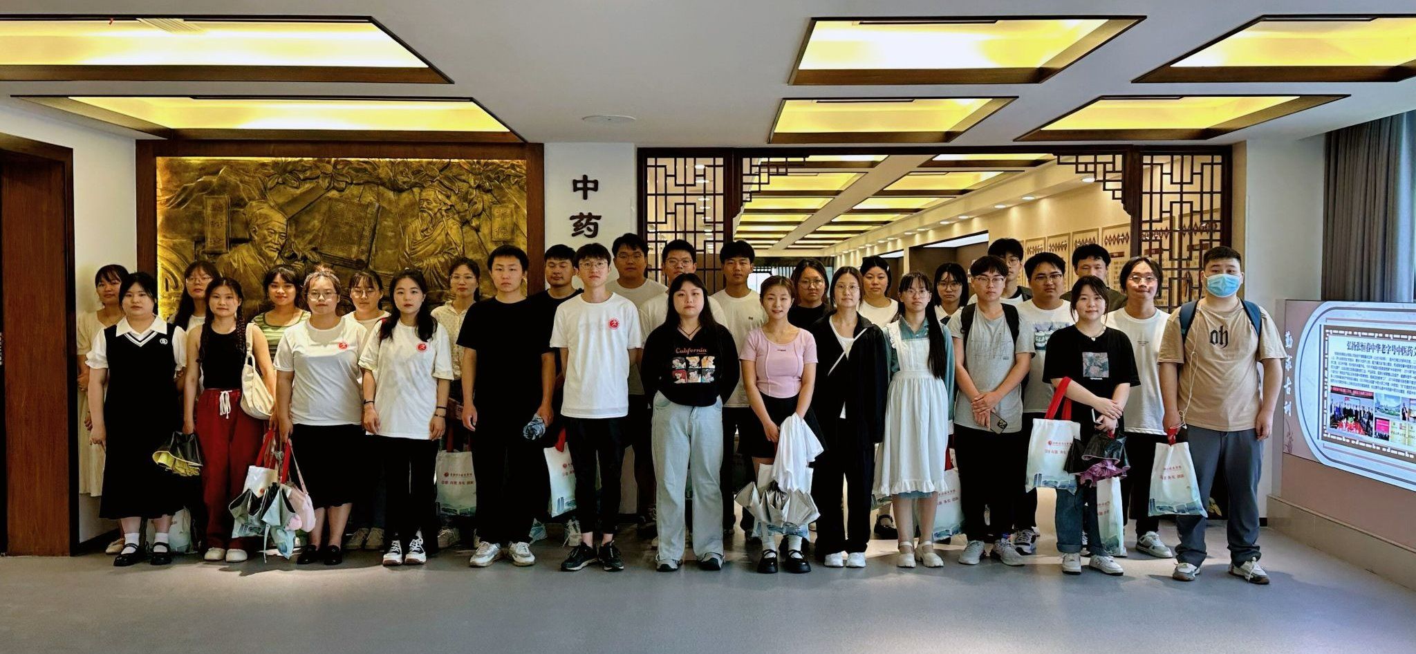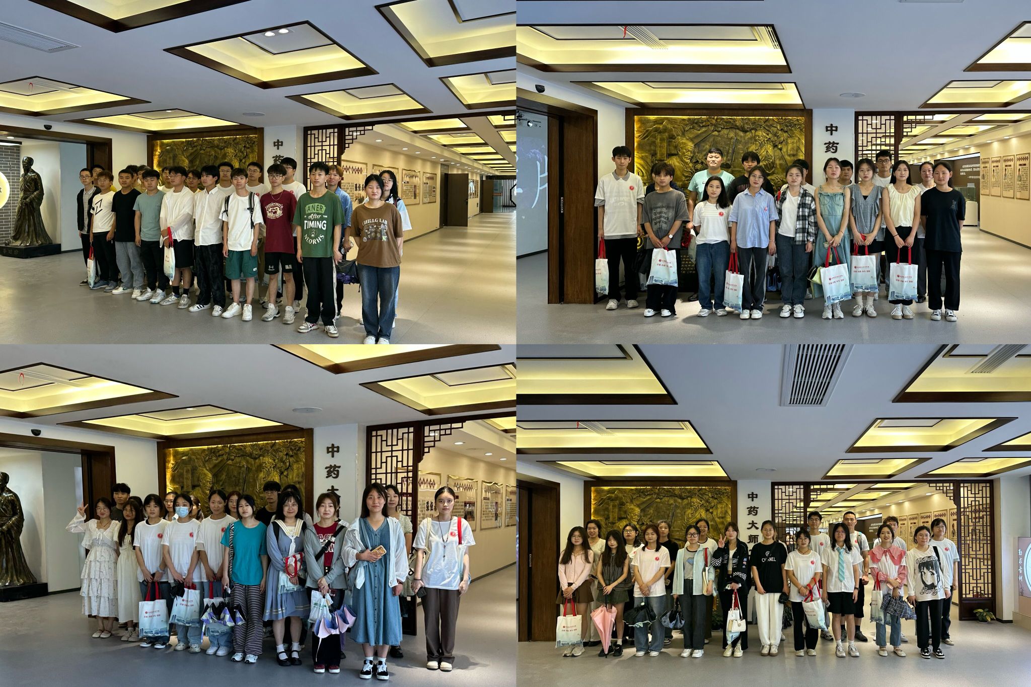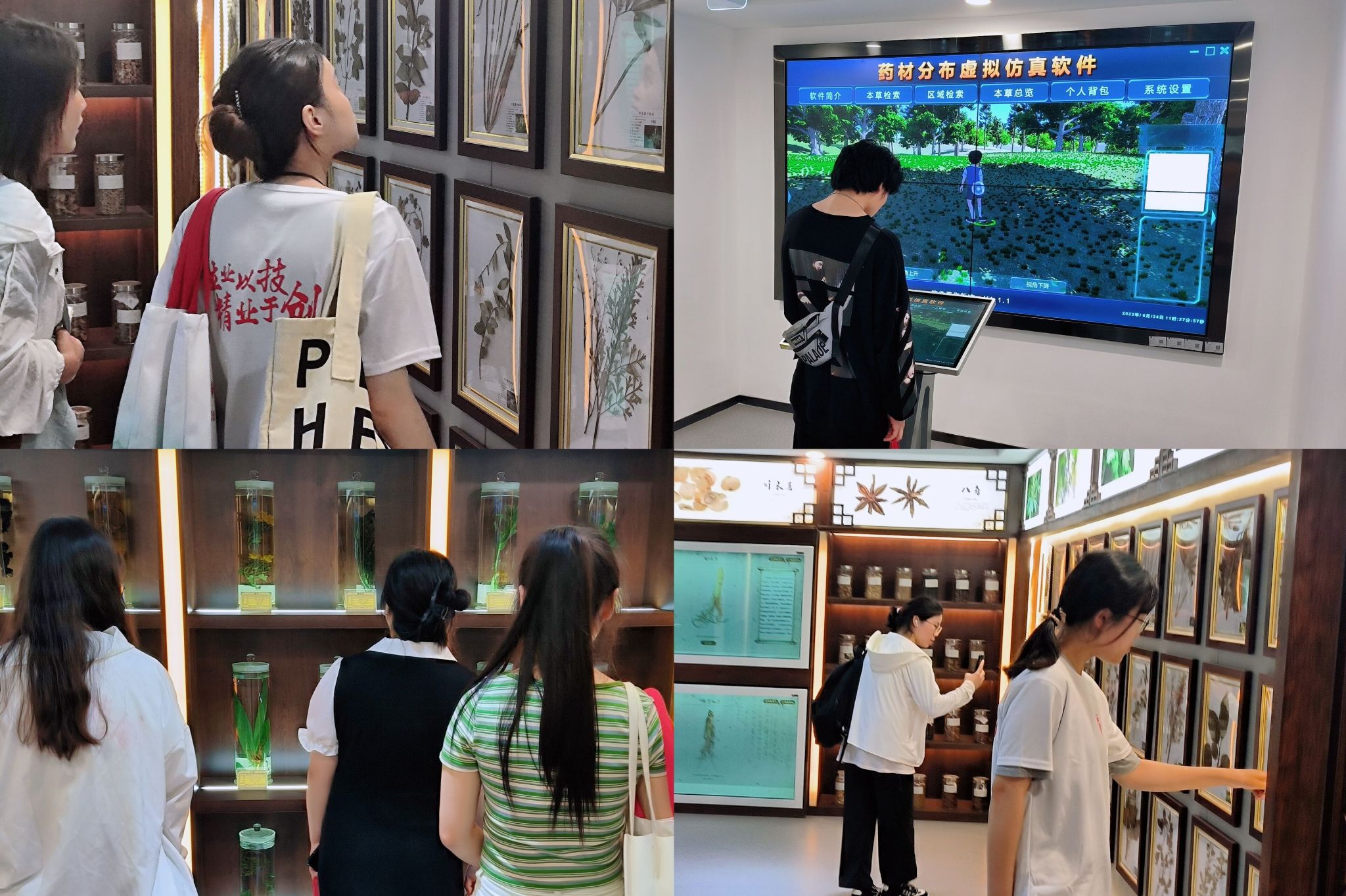 在学院药品教研室郭豪杰老师声情并茂的讲解下,同学们听取了中药发展简史并参观了各种中医药文化藏品的展示,通过走访展厅,了解学院中医药学科优势与双高建设高质量发展成果。参观过程中,同学们兴趣高涨,沉浸式感受中药馆承载的丰富艺术价值、文化价值与社会价值,为毕业增添了别样的回忆。