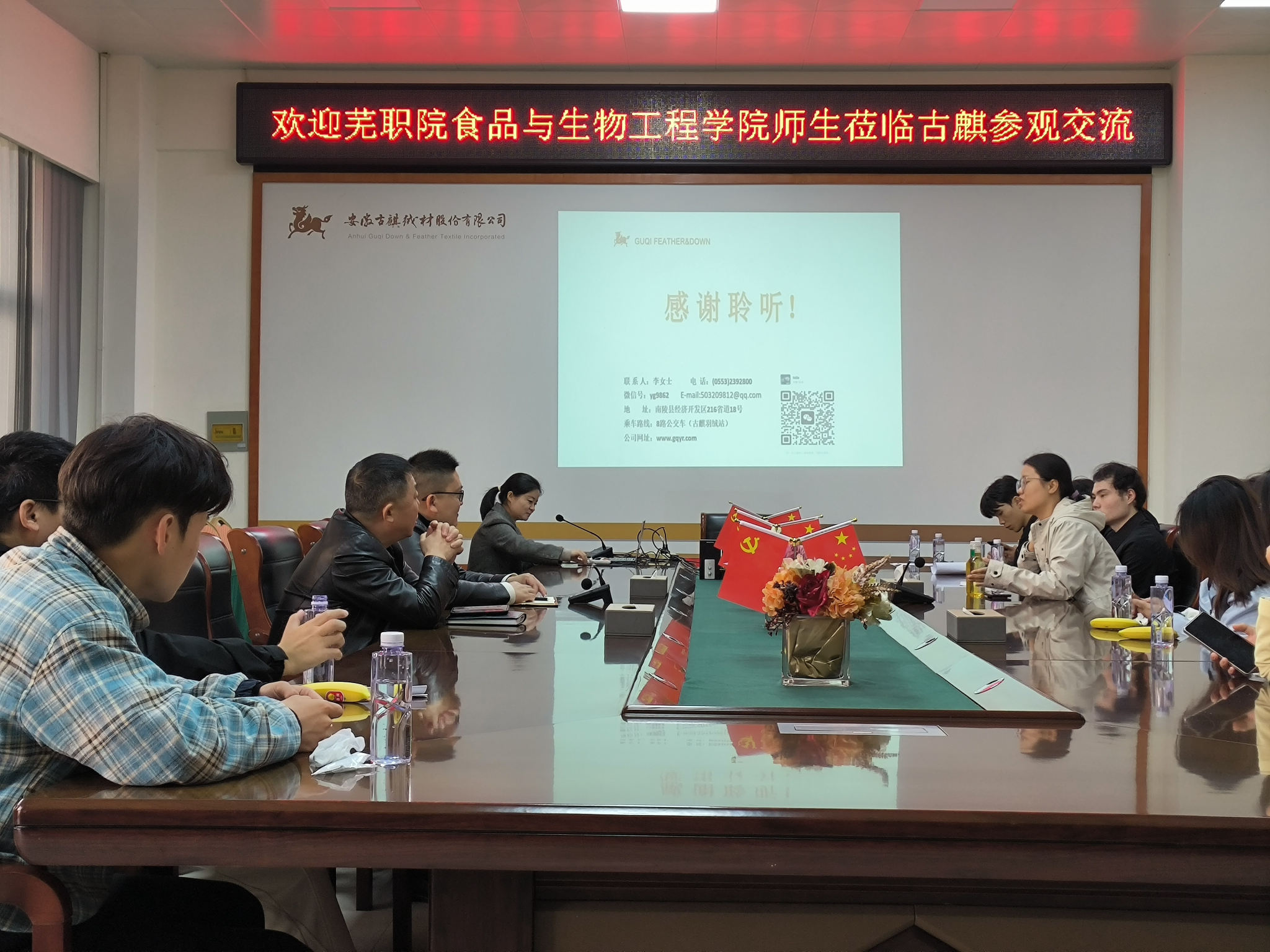 食品与生物工程学院师生一行,于11月6日赴安徽古麒绒材股份有限公司的参观交流。此次访问旨在深化校企合作,拓展就业渠道,为学生提供更广阔的实习与就业平台。