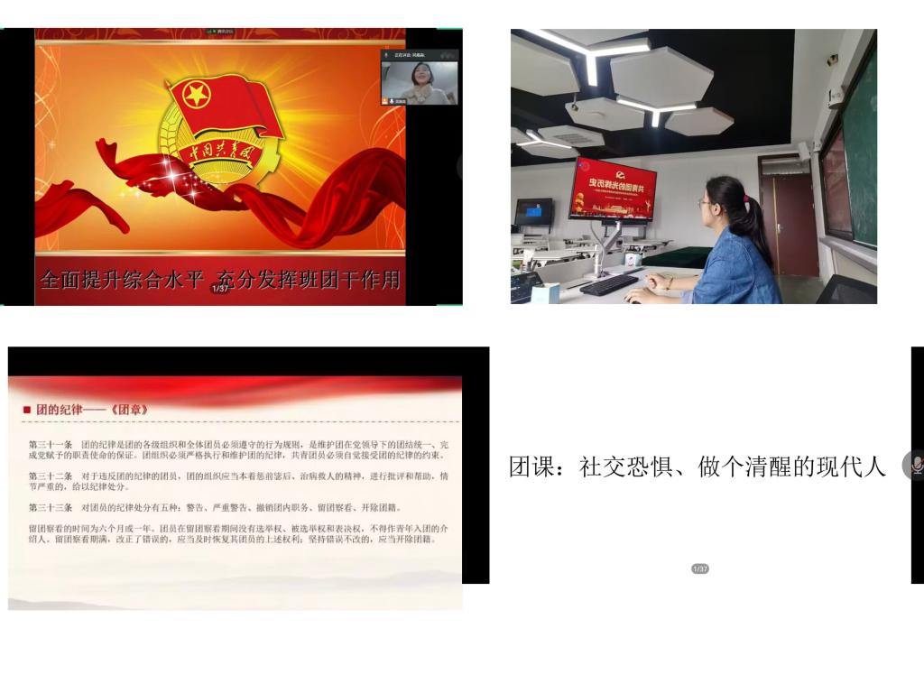 首堂团课上,谢诗慧老师带领同学们回顾了共青团的百年历史,主题为共青团的光辉。百年前,一个在马克思主义思想指引下的全国先进青年组织诞生了;一群新青年高举马克思主义思想火炬,在风雨如晦的中国苦苦探寻民族复兴的道路。回望百年,每个坚定的足迹下都饱含着奋斗的艰辛。谢老师强调,中国共青团带领一代代青年用青春和热血书写了壮丽的青春篇章,而今接力棒已交至新时代青年手中。最后,谢老师对同学们提出期望,希望同学们都能做到:逢其时,不负众望,砥砺前行!