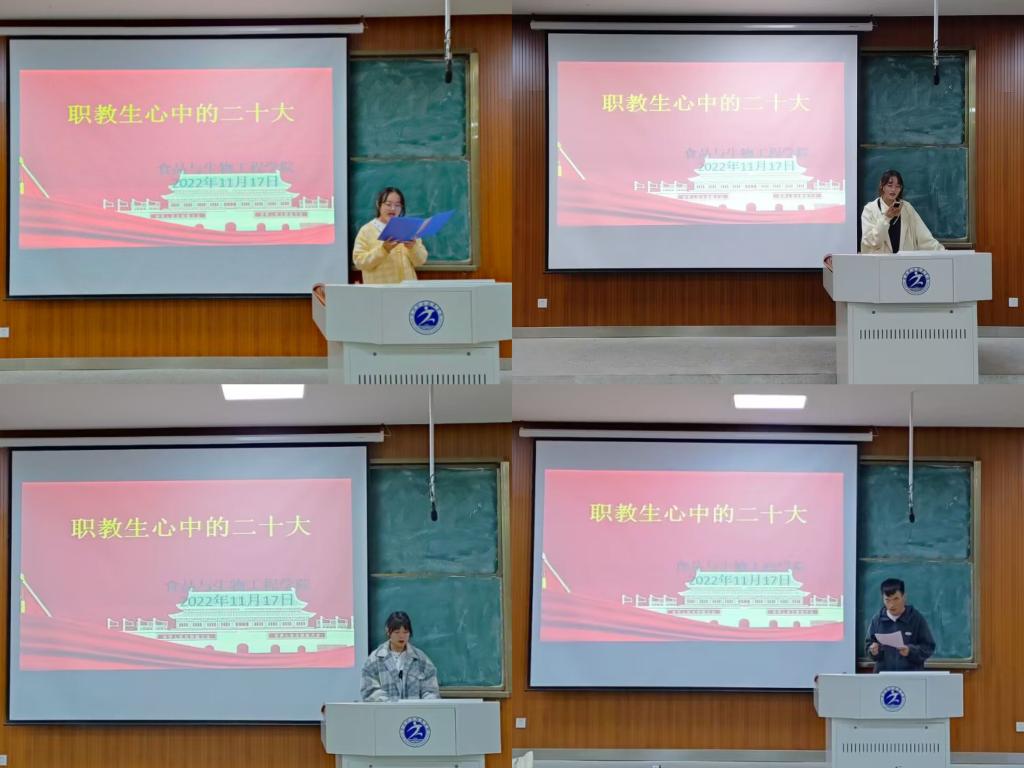 为深入学习宣传贯彻党的二十大精神,11月17日,食品与生物工程学院在西二南一阶梯教室开展以“职教生心中的二十大”为主题的演讲比赛。我院2021级和2022级学生积极参与,激烈角逐,畅谈学习感悟。