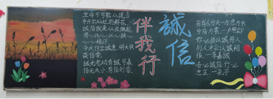通过黑板报文化,潜移默化的熏染了学生树立诚信意识,引导学生城实做人,树立正确的世界观、人生观、价值观。