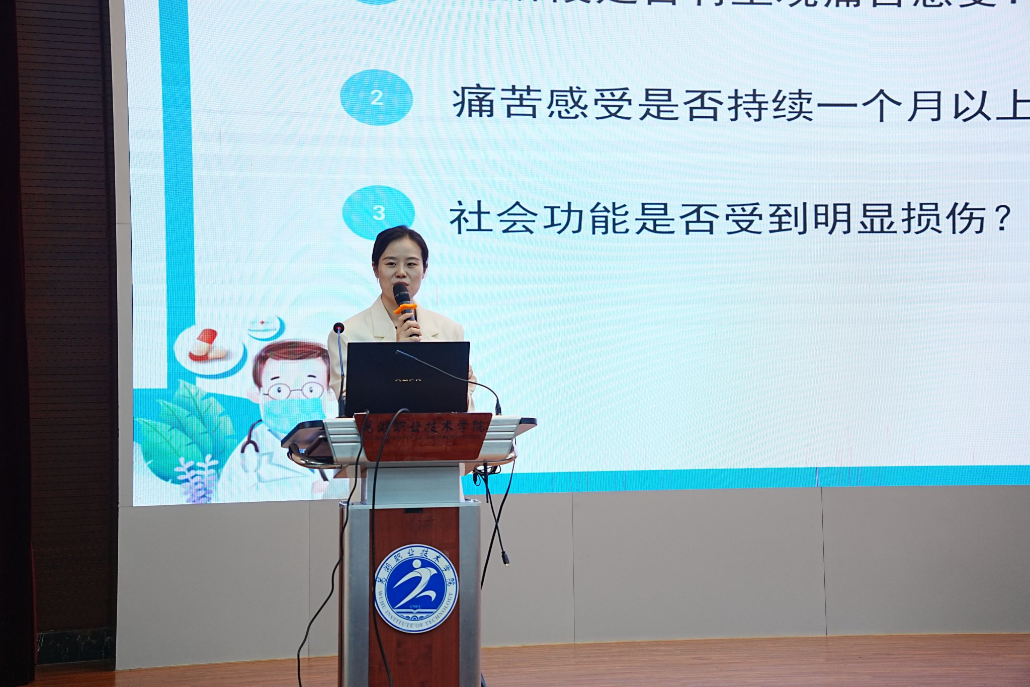 讲座中,周静雯首先介绍了一些大学生常见的心理健康问题,如学习压力、人际关系困扰、情绪波动等,并与同学们分享了解决这些问题的方法和技巧。其次,她深入讲解了评估心理健康的重要性,教授了简单实用的评估技能,帮助同学们更准确地了解自己的心理状态,并及时采取有效的应对措施。最后,周静雯详细讲解了多种调适方法,包括放松训练、情绪管理、自我激励等,鼓励同学们积极参与各种健康的生活方式,提升心理韧性,增强抗压能力。