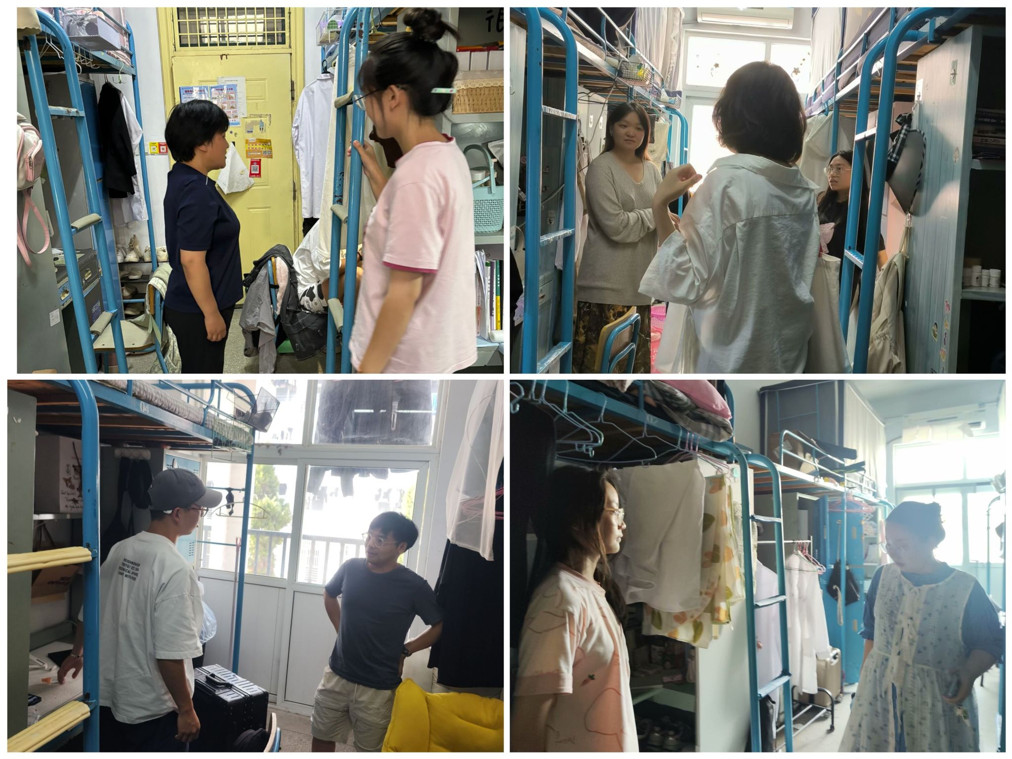 为更好地全面掌握返校学生的生活状况,学院组织班主任们在新学期开始之际,深入学生宿舍进行查寝。通过与学生面对面的交流,班主任们不仅了解了学生的住宿情况,还在交流中分享了暑期见闻,并及时解答了学生在生活上遇到的问题,确保每位学生都能在舒适和安全的环境中开启新学期。