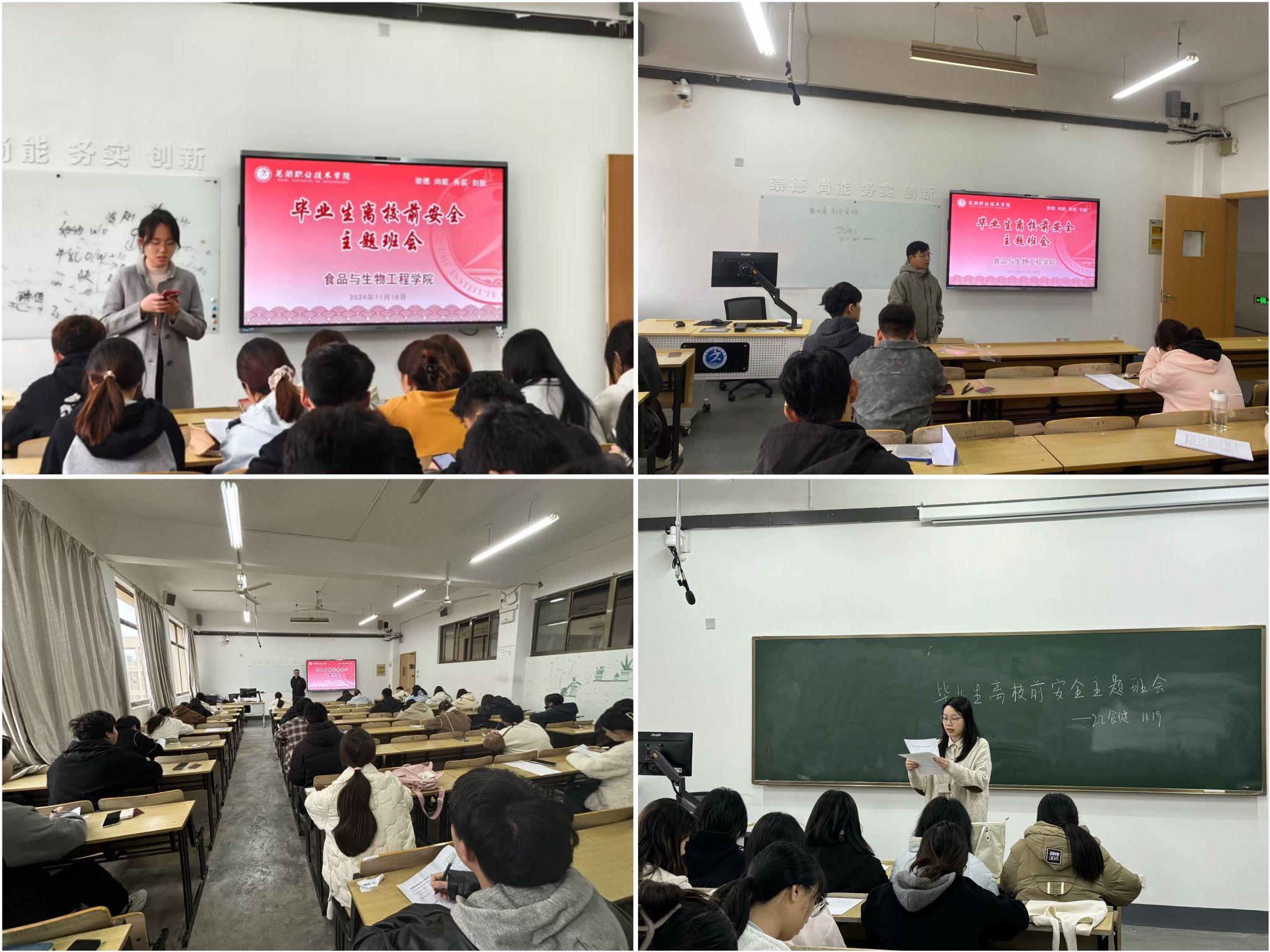 11月20日,食品与生物工程学院组织毕业班班主任召开2025届毕业生离校前安全主题班会。本次班会面向即将离校的2025届毕业生,旨在提高同学们的安全意识,为同学们离校实习保驾护航。