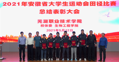 5月12日,校体委、生物工程学院在南校区图书馆报告厅隆重举行2021安徽省大学生体育联赛田径比赛总结表彰大会,表彰在2021安徽省大学生体育联赛田径比赛中表现优秀的邓孟明等六名同学。大会由生物工程学院组织员兼学工科长洪伟主持,校党委宣传部、校体委、学生处等部门领导出席会议,生物工程学院党政班子成员以及全体教师、300多名各班级学生代表参加大会。