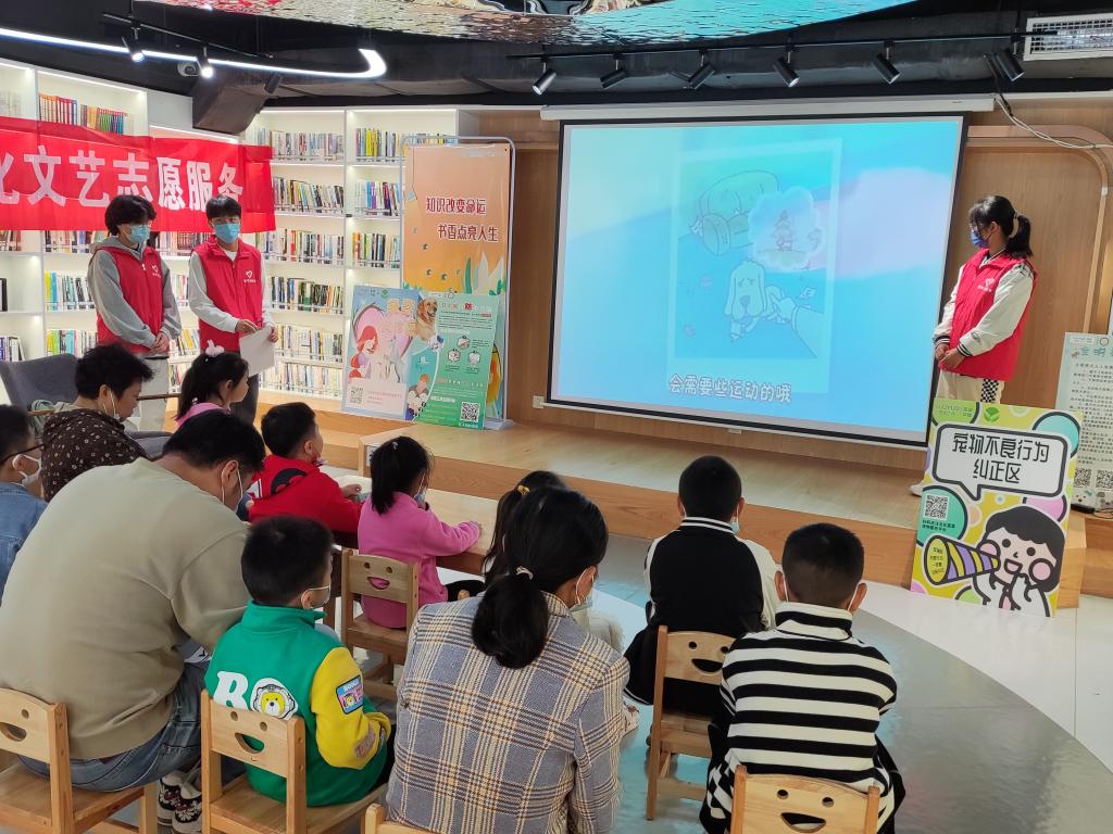 本次活动主要面向中江书苑少儿读者及周边市民传播文明养宠知识。随着人们生活水平的提高,养宠家庭逐渐增多,如何加强社区养宠管理,维护公共秩序和环境卫生成为人们普遍关心的问题。活动现场,青年志愿者们向居民发放《芜湖市养犬管理条例》宣传手册,普及文明养犬相关知识,同时结合科普视频动画讲解宠物传染病及接种疫苗等方面的专业知识,并呼吁养犬居民要主动到犬类管理部门办理养犬登记、按时为爱犬接种疫苗、以及一些日常护理常识等。志愿者通过耐心细致地讲解,进一步宣传和倡导文明养宠的重要性和长远意义。