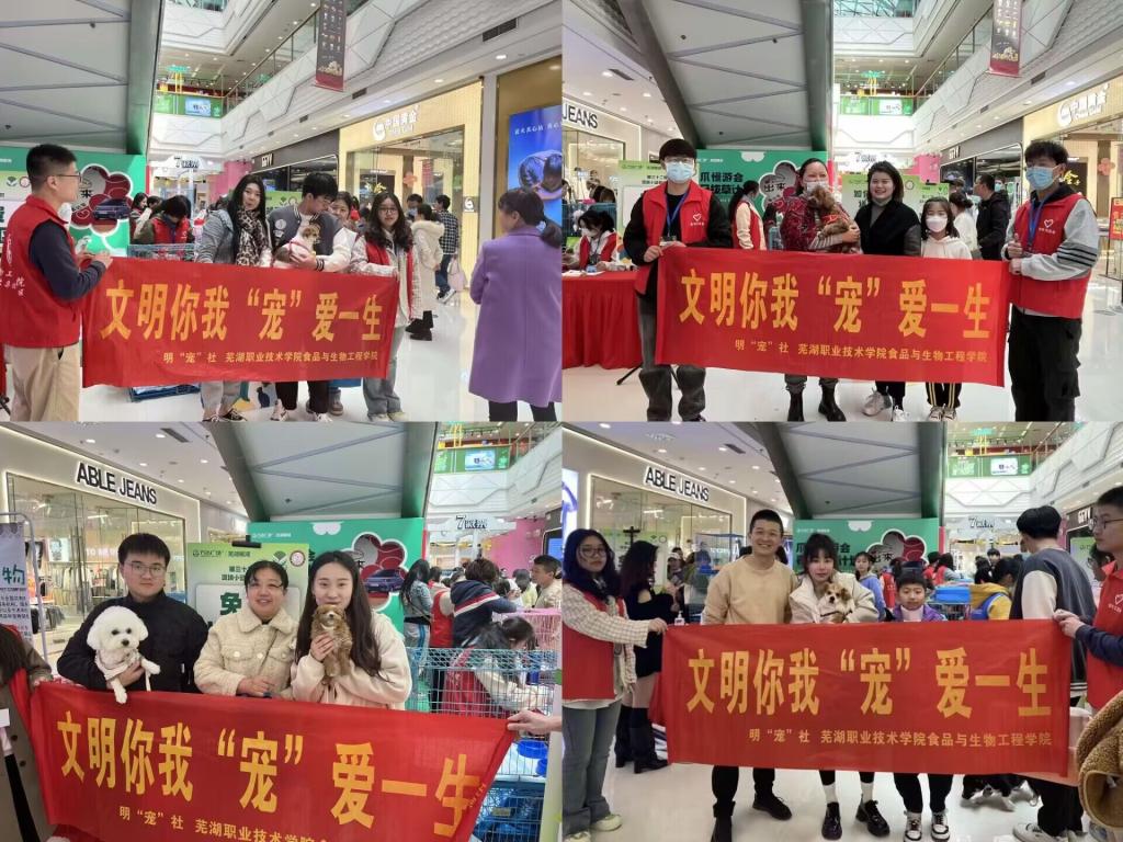 为弘扬青年志愿服务精神,发挥省级青年文明号标兵团队示范引领作用,3月12日,由芜湖职业技术学院动物养殖技术服务队师生志愿团队举办的第三十二届“文明你我,‘宠’爱一生”大型公益实践活动,在芜湖市镜湖区万达广场成功举办。