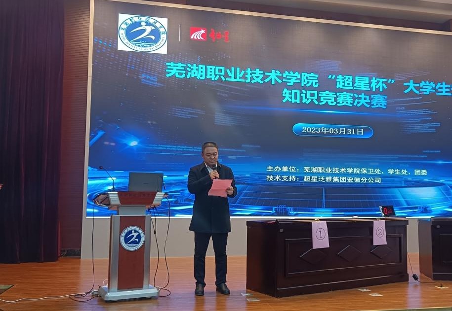 3月31日,我校在文津校区图书馆学术报告厅举办2023年“超星杯”大学生安全知识竞赛决赛。本次大赛由校保卫处、学生处、团委主办,超星泛雅集团安徽分公司提供技术支持。校党委委员、副院长季慕寅,党委委员、宣传部部长曾友山,党委委员、园林园艺学院党总支书记朱志国,超星泛雅集团安徽分公司总经理康宝勤等出席活动。学生处、团委、保卫处相关负责人,各二级学院党总支书记、副书记、辅导员及学生代表近200人参与了活动。