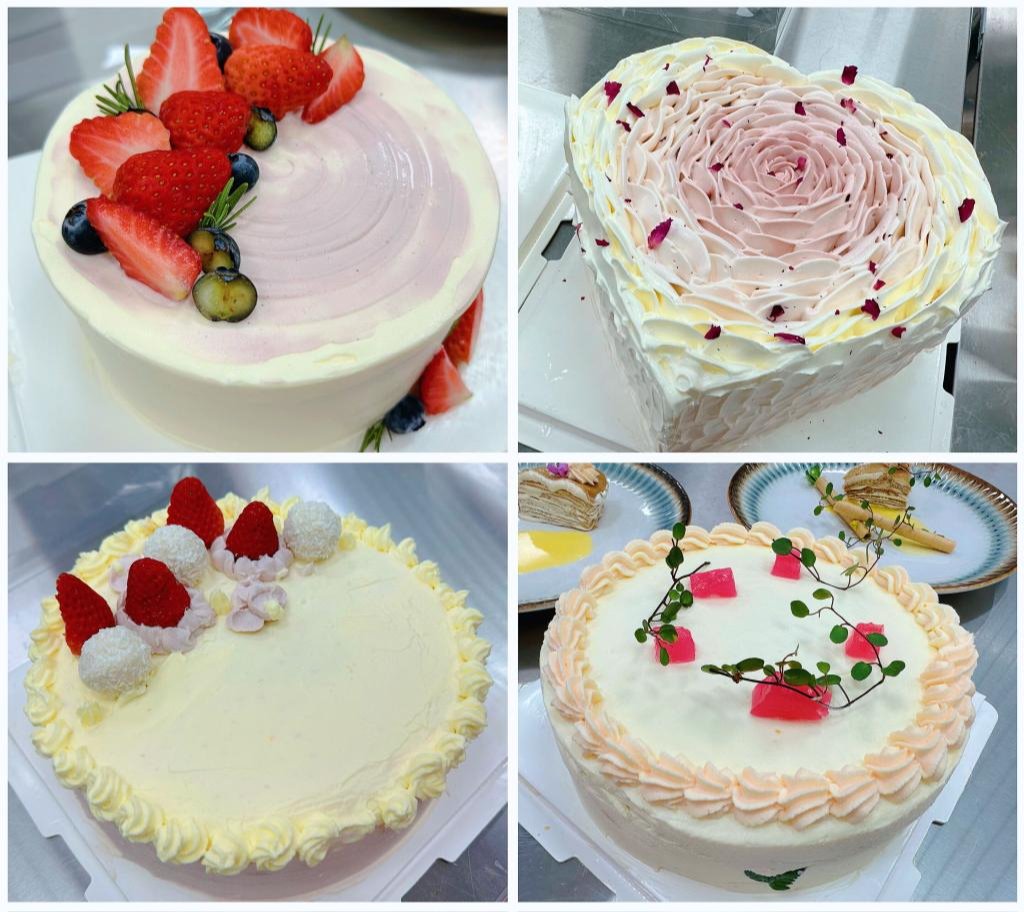 比赛开始后,同学们便热火朝天地忙碌起来,奶油的香气弥漫到空气中。左手旋转、右手抹胚,干净利落,一个完美的抹坯就这样完成了。接下来,在一双双巧手的操作下,绵密的奶油划出了优美的弧线,千变万化的造型,展现出了同学们的创意与技艺。同学们在规定时间内陆续完成了自己的作品,娴熟的技术赢得了评委老师们的一致赞赏。