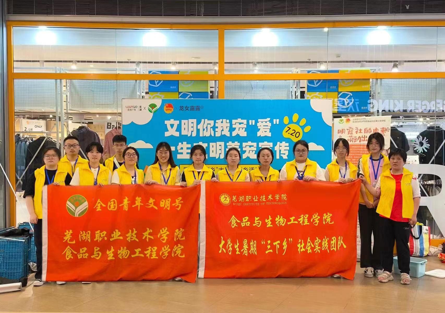 文明养宠树新风,凝心聚力促文明。近日,全国青年文明号--芜湖职业技术学院食品与生物工程学院师生利用暑假,先后在芜湖市吾悦广场、银泰城开展暑期“三下乡”社会实践活动暨第52期、第53期文明你我,“宠”爱一生大型公益实践活动。