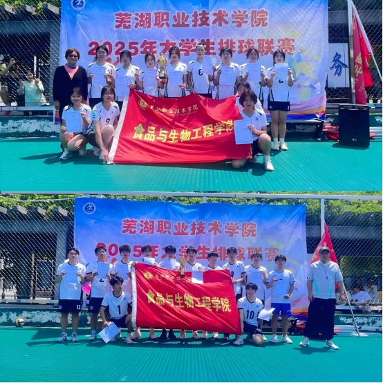 5月11日,芜湖职业技术学院2025年大学生排球联赛决赛圆满落幕,食品与生物工程学院男女排再度携手登顶,斩获双冠,延续了学院在校排球赛事中的辉煌战绩,生动诠释了食品与生物工程学院学子届届相传的奋进本色与团队薪火。