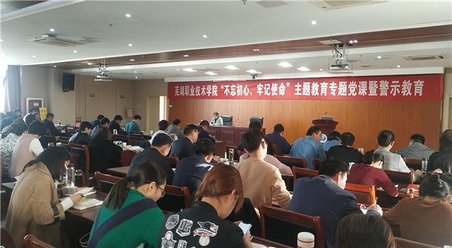 2019年10月31日,芜湖职业技术学院开展“不忘初心、牢记使命”主题教育专题党课暨廉政警示教育。生物工程学院党总支组织全体教师党员参加了本次活动。