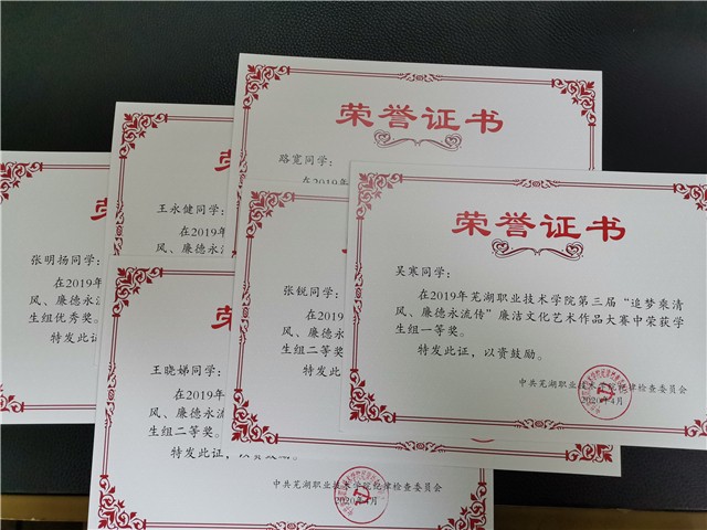2020年4月8日,由校纪委主办、艺术传媒学院承办的以“追梦乘清风、廉德永流传”为主题的第三届校园廉洁文化艺术作品大赛揭晓。本次大赛中,生物工程学院党总支认真组织,广大师生积极参与,报送了一批优秀的廉洁文化艺术作品。最终经过评委的认真评选,生物工程学院张海燕、萧晟两位老师作品分获二、三等奖,曹侃、熊冉两位老师作品均获得优秀奖;学生组中,吴寒同学的国画作品获得一等奖,张锐、王晓娣两位同学的书画作品均获二等奖,路宽、王永健两位同学获得三等奖,张明扬同学作品获优秀奖。