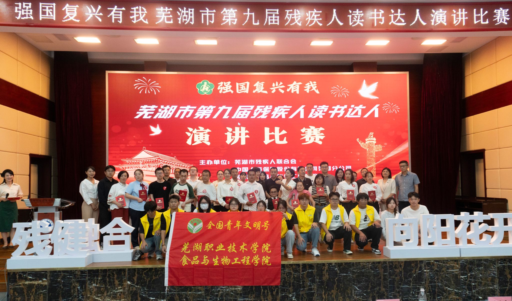 9月26日下午,芜湖市残联、中国人寿芜湖分公司、芜职院食品与生物工程学院等在我校文津校区图书馆报告厅联合举办芜湖市第九届残疾人“读书达人”演讲比赛,食品与生物工程学院全国青年文明号团队全程做好志愿服务工作。