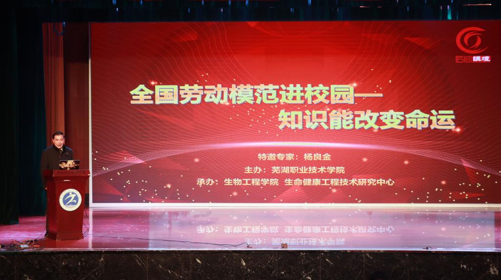 为聚力学校双高建设,进一步弘扬劳模精神,发挥劳模示范引领作用。12月23日下午,芜湖职业技术学院生物工程学院在南校区报告厅面向大一大二在校生开展了“全国劳模进校园 知识能改变命运”的主题讲座。此次讲座由陶玲凤老师主持,校工会主席、校关工委副主任金根木、学院领导、双高建设食品营养与检测专业群主持人张爽出席了本次讲座。