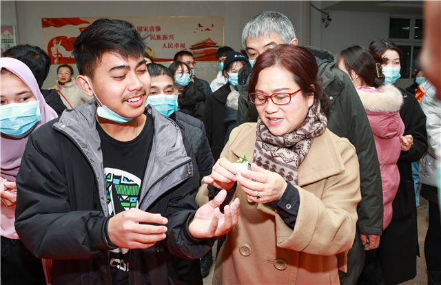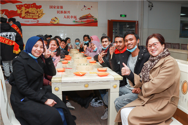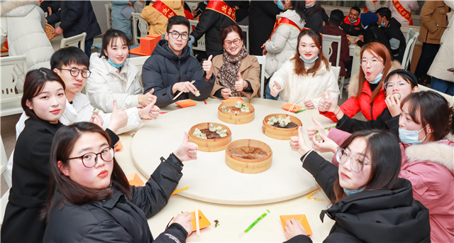 “耿福兴”创建于清光绪年间,历经沧桑、百年不衰,誉满江城、闻名遐迩。它将传统的美食端上现代人的餐桌,让这种美味在现代人的舌尖上得以传承。体验活动一开始便由高述红董事长为大家讲解了翡翠烧麦的制作要领和注意事项。紧接着,在省级非遗传承人张振清大师、市级非遗传承人鲁叶柄大师以及多位面点师傅手把手地亲自指导下,大家纷纷投入到翡翠烧麦的制作之中。对中国美食情有独钟的国际留学生们兴致勃勃,他们积极参与,真诚地拜师学艺,一个个用手中的面皮和拌好的馅料有模有样地学做起翡翠烧麦,活动现场充满了欢声笑语。已来华近一年的留学生“马云”在现场用一口流利的普通话说:“通过中华传统面点制作技艺体验活动,我对中国传统饮食文化的了解越发深入了。”在活动最后,大家品尝着自己的劳动成果,纷纷为耿福兴的“美味的烧麦”点赞。