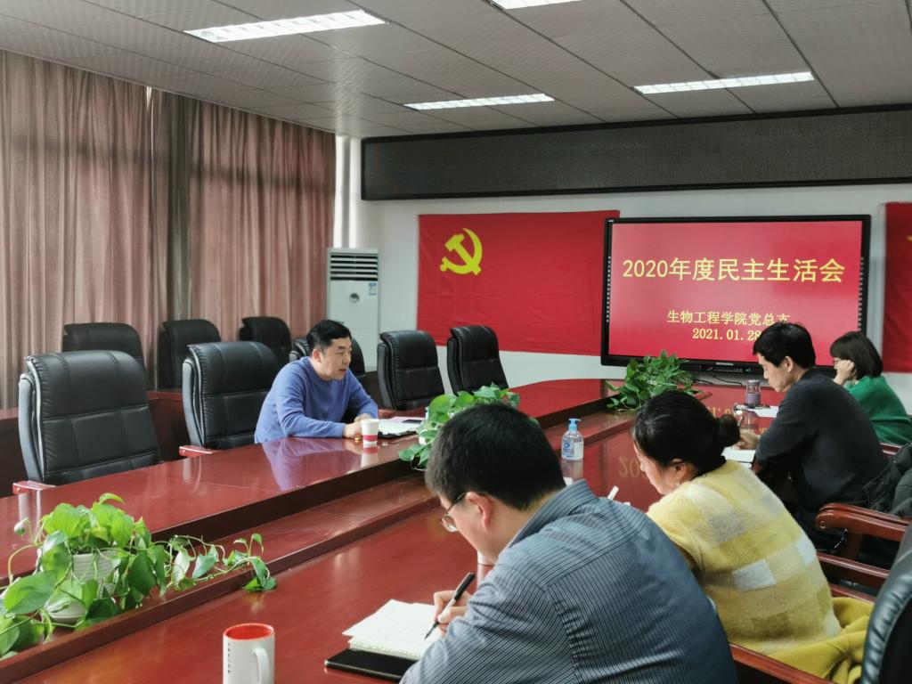根据《关于认真开好2020年度基层党总支党员领导干部民主生活会的通知》等文件精神,按照校党委关于“不忘初心、牢记使命”主题教育和关于深化“三个以案”警示教育工作要求。2021年1月28日,生物工程学院党总支召开2020年度民主生活会,会议由党总支书记彭常安主持,党总支班子全体成员参加了会议,校党委委员、副校长孙晓雷同志到会指导。
