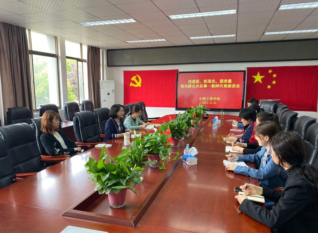 4月21日,根据校党委新一轮深化“三个以案”警示教育工作要求,生物工程学院教工党支部组织召开了找差距,抓落实,提质量——“我为群众办实事”教师座谈会。会议由教工党支部书记曹侃主持,总支副书记陶玲凤和各教研室教师代表参加了会议。