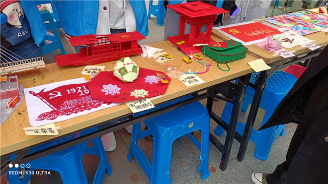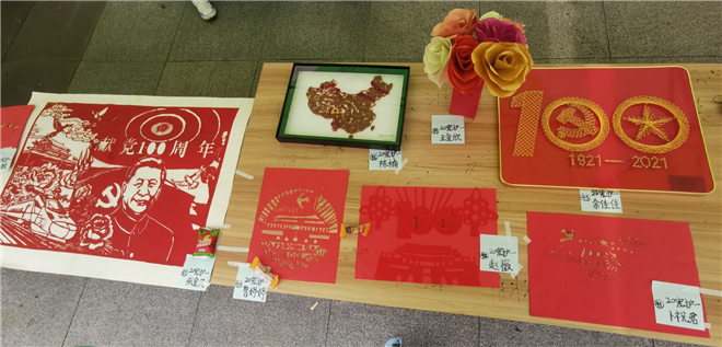 本次手工艺品大赛以“建党百年,爱我中华”为主题,在20多天的时间里,共征集了剪纸、刻纸、中国结、吊坠、十字绣、头饰、摆件模型、手工简笔画等近20个种类的百余件手工作品。在初展环节,邀请现场观看的全体师生参与评选投票,相对突出的作品再经由教师和学生代表进行综合评分从而选出一二三等奖和最佳创意作品。本次展出的作品,外观精美、做工细腻、创意独到、紧扣主题,既展现了新时代大学生热爱生活、善于观察、传承经典的优秀品质,更表达了同学们对党、对祖国深切的热爱和由衷的歌颂,精美的作品引来一波波师生驻足观赏,各自不同的风格和巧思也吸引了大家纷纷为自己喜爱的作品投票。