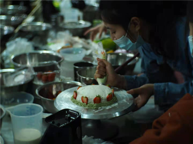 活动现场,同学们积极踊跃,思维创新,都各具想法,拼盘造型创意百出。同学们将原本没有任何装饰的蛋糕胚和面团,变成了一个个精美的作品,不仅美观更富有蕴意。虽是日常的面粉、鸡蛋、白砂糖,却组合出奇妙的温馨感受,由自己亲手制作的新鲜出炉的面点,尝起来格外香甜,现场沉浸在一片欢声笑语中。
