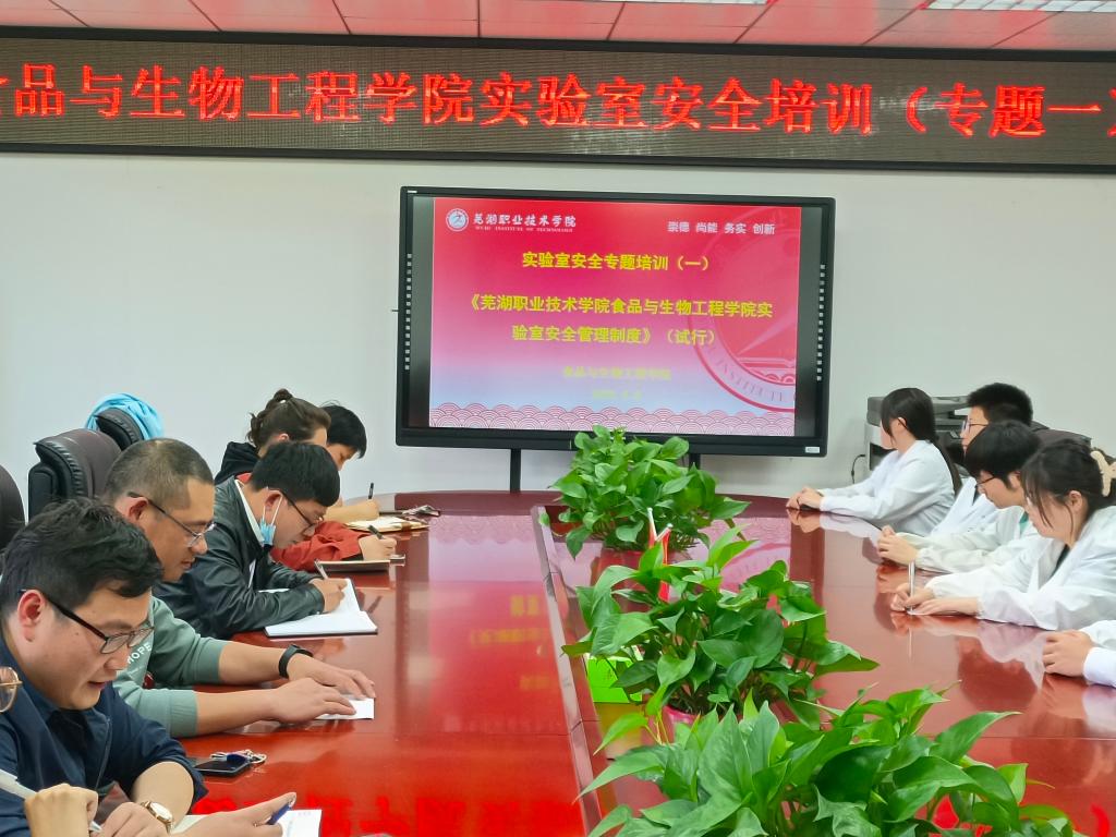 为贯彻落实为贯彻落实中央和省委省政府的重要指示批示,根据《教育部办公厅关于开展全国高等学校实验室安全隐患排查工作的通知》、《安徽省教育厅关于做好高校病原微生物实验室生物安全管理问题整改工作的通知》、《芜湖职业技术学院校园安全专项整治三年行动实施方案》等文件精神,2022年4月8日起,食品与生物工程学院组织相关教师和全体学生实验助理共同开展实验室安全系列培训。