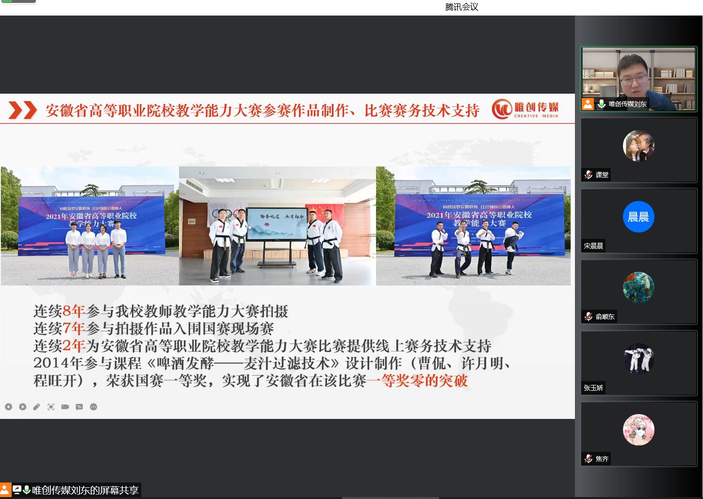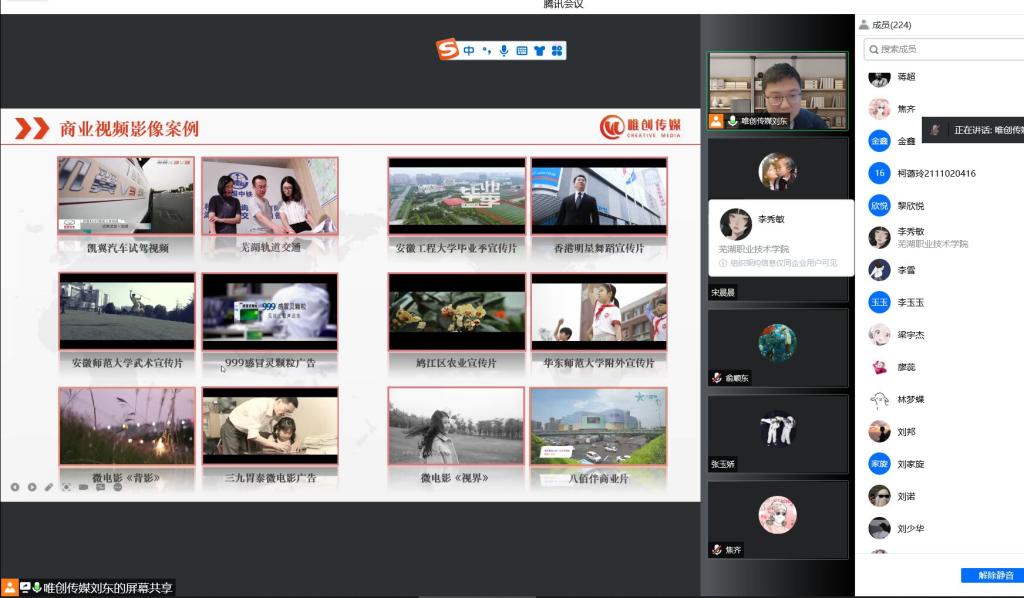 课程开始后,刘东介绍了自己的在校学习和创业经历。在校期间,刘东专注学习积累,积极参加实践活动,多次评为“优秀学生干部”,毕业后,刘东结合自身优势敏锐捕捉市场动向,成功开启了自己的创业之路。经过这些年来的不懈努力,成功创立文化传媒公司,公司立足芜湖,辐射安徽,先后为安徽省高等职业院校教学能力大赛、安徽省工业机器人技术应用技能大赛等大型赛事提供了成熟技术保障。刘东以自己的亲身经历为例,提醒同学们在创业前首先需要思考清楚创业的目的和目标,并且分析自身具备的条件和能力,在创业过程中则应该保持长期“战斗”的决心和毅力。