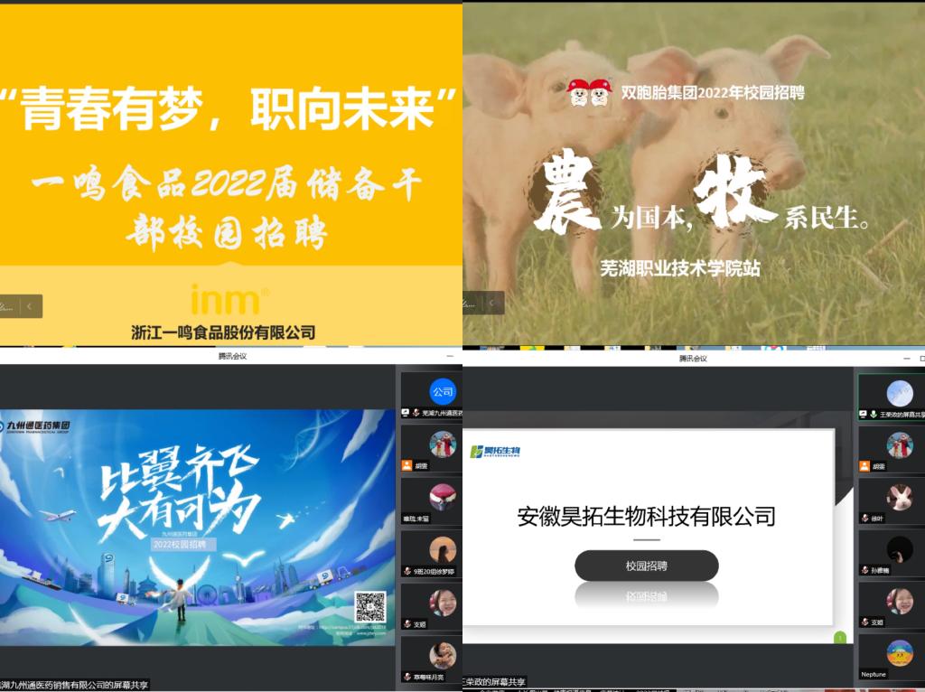 结合当前疫情形势,本次专场招聘会采用线上形式开展。本场招聘会共邀请到14家企业与本科班毕业生实现精准对接。会上,浙江一鸣食品股份有限公司、双胞胎集团和诺唯赞生物科技股份有限公司等向同学们详细介绍了公司的主营业务、招聘岗位以及福利待遇等。同学们根据个人就业意向与企业招聘方进行了深入交流,不少同学当即确定了心仪岗位。