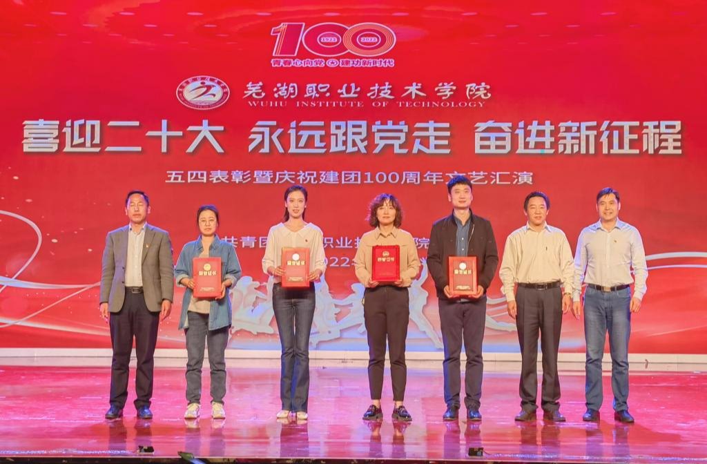 “请党放心,强国有我!”同学们的铿锵誓言,讴歌了建团百年来岁月铸就的美丽画卷。历经百年栉风沐雨,共青团始终坚定不移跟党走,团结带领共青团员和广大青年前仆后继、勇当先锋。演出结束后,由我院学工科长谢诗慧代表学院上台领取获奖证书。
