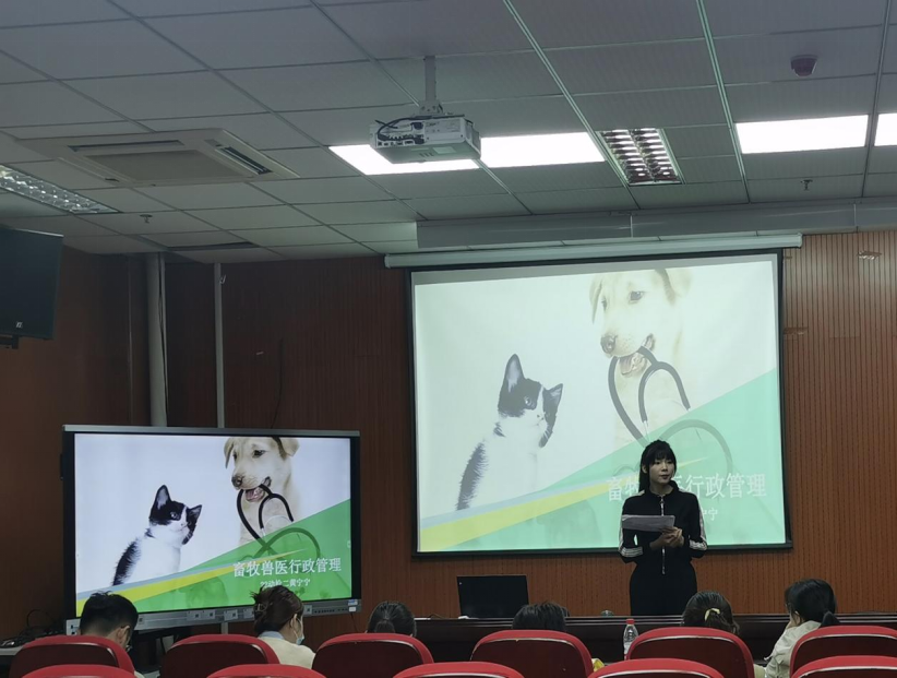 进入选拔赛的选手有22宠医杨锐峰、22食检蒋成燕、22动检黄宁宁三位同学。参赛选手结合自己的职业规划设计书,按抽签顺序依次进行演讲。通过PPT演讲,理性分析自己的职业兴趣、性格、职业价值观、能力等,综合分析社会环境、家庭环境等各方面的因素,对未来的职业生涯进行详细且合理的规划。