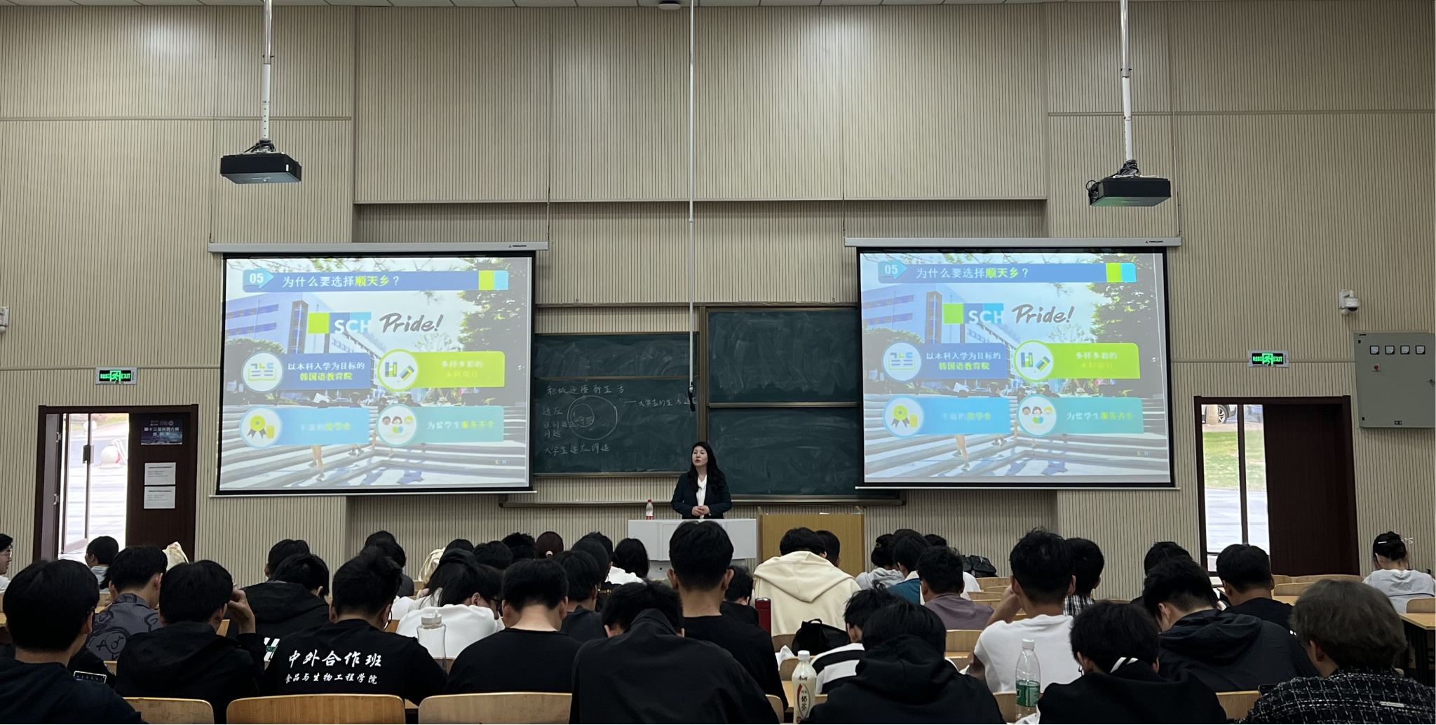 会后,林丽明在图书馆阶梯教室为132名全体食检专业中韩合作班学生召开了学生见面会,并且重点介绍了顺天乡大学以及留学规划。本次开班仪式的顺利举办,将进一步推进食品检验检测技术专业与国际院校的交流与合作,有利于学院培育新一批国际化复合型人才,不断提升综合实力与办学水平。(文、图/吴月霞 审/彭常安)