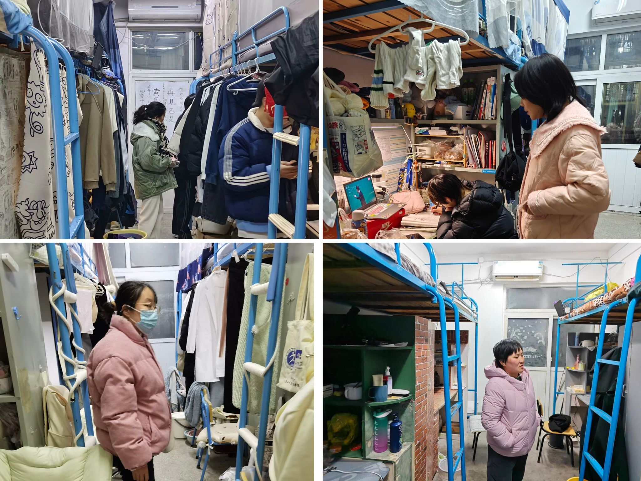 在期末寝室安全检查中,学院领导和各班班主任逐个走访学生宿舍,与学生进行谈心沟通,及时掌握学生在校的基本情况。大三年级班主任对留校实习和备考同学表示了关心与慰问,大一大二年级班主任与各寝室同学就期末复习进度、寝室人际交往等问题进行了深入交流。