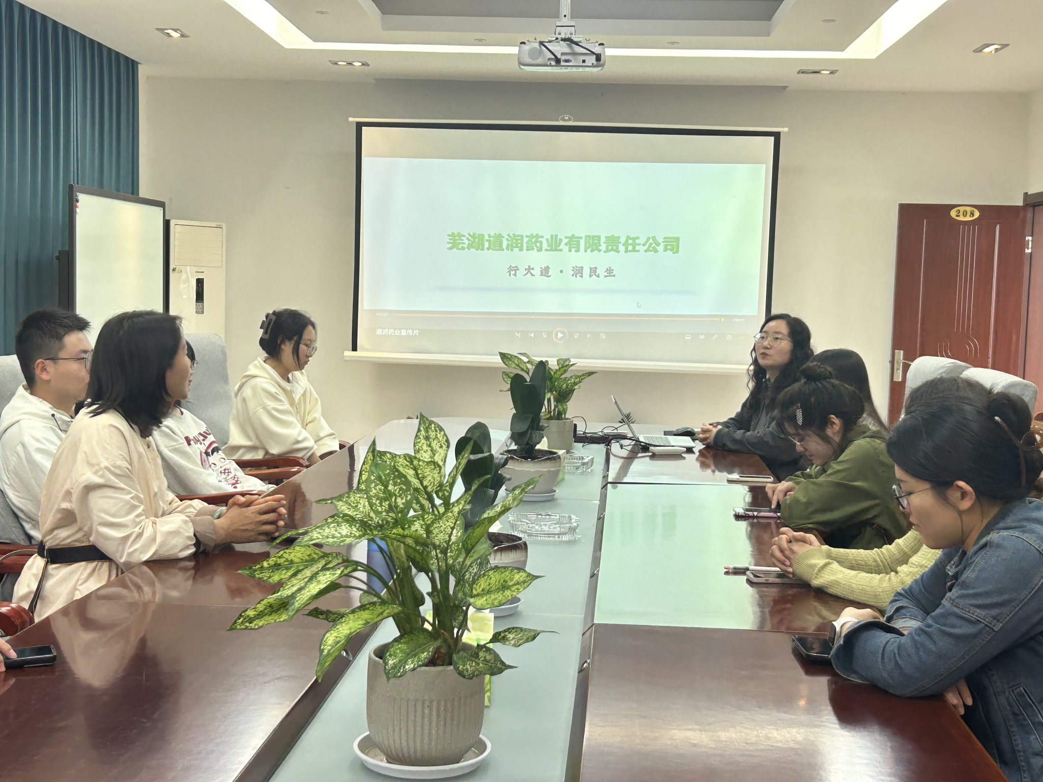 为贯彻落实教育部访企拓岗促就业专项行动要求,做实做细就业工作,不断加强校企合作,深化产教融合,精准服务地方经济发展,4月2日,食品与生物工程学院党总支副书记陶玲凤带领药品教研室教师夏梦秋、王星晨和药品质量与安全专业学生前往芜湖道润药业有限责任公司开展调研交流。