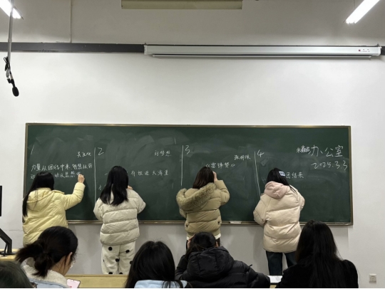 3月6日,“弘扬雷锋精神,书写青春风采”板书比赛在西二306教室举行。参赛同学将雷锋精神融入板书设计,字迹工整、内容深刻,展现了扎实的基本功和对雷锋精神的感悟。一等奖获得者张明珠同学的作品将雷锋日记与现代插画结合,实现传统精神与青年审美的有机统一。