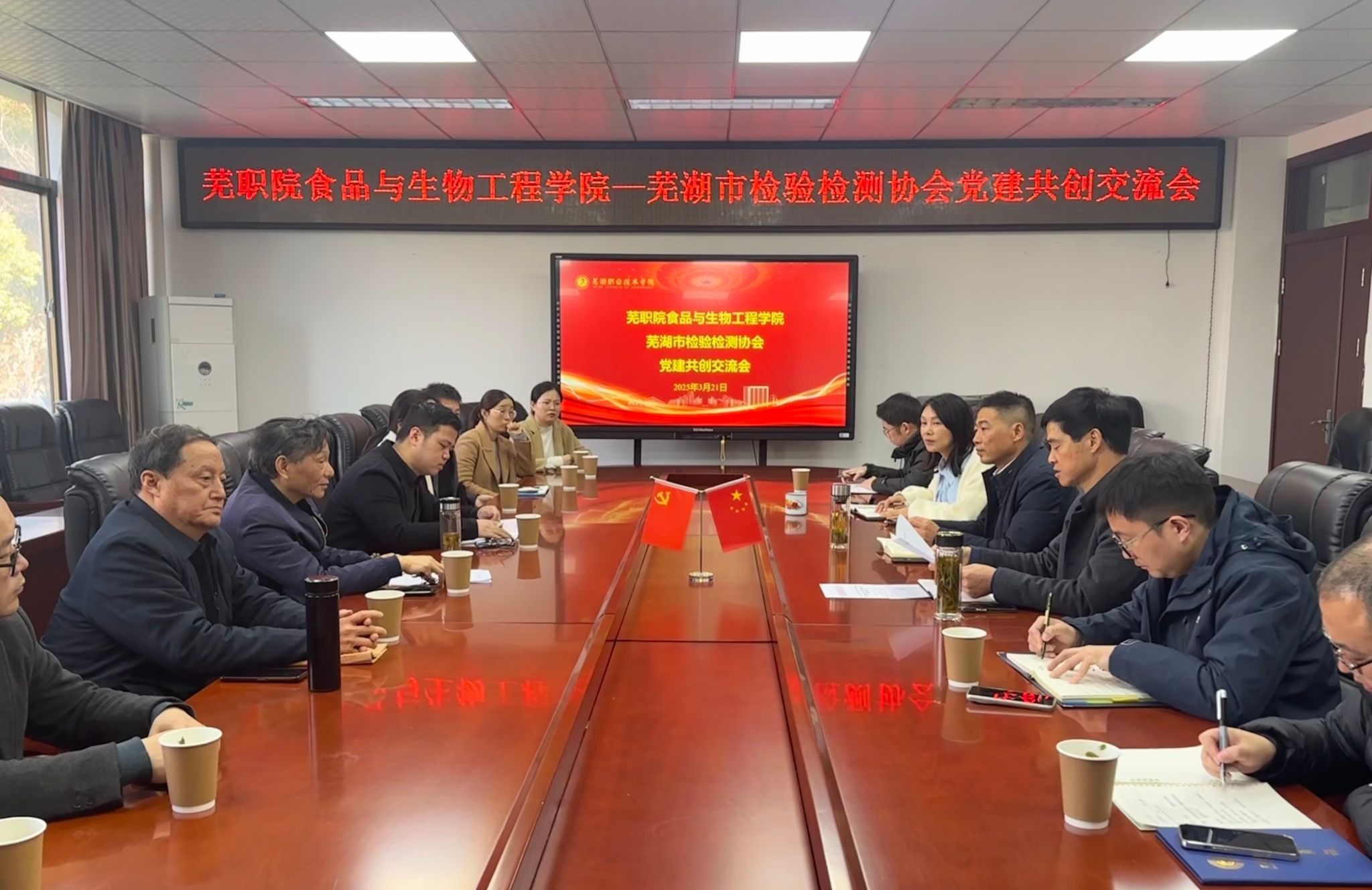 3月20日,我校食品与生物工程学院与芜湖市检验检测协会联合开展的党建共创交流会在学院会议室成功举办。芜湖市检验检测协会会长刘先华、协会企业党员代表及学院班子成员等齐聚一堂,共谋党建与业务合作发展新路径。