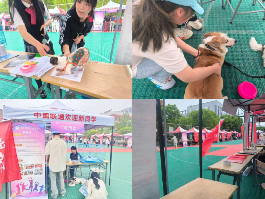 同日,社团文化节在校园内精彩启幕,明宠社携三只可爱狗狗惊喜亮相。活动现场,明宠社展位吸引众多同学驻足,大家围绕萌宠积极咨询养宠知识,志愿者们耐心解答,热情传播健康养宠与文明养宠理念。其中,集章兑换套圈环节人气爆棚,同学们踊跃参与集章活动,兑换套圈机会赢取玩具等奖品。在轻松欢乐的互动氛围中,同学们对宠物的喜爱进一步加深,也充分感受到明宠社的独特魅力。